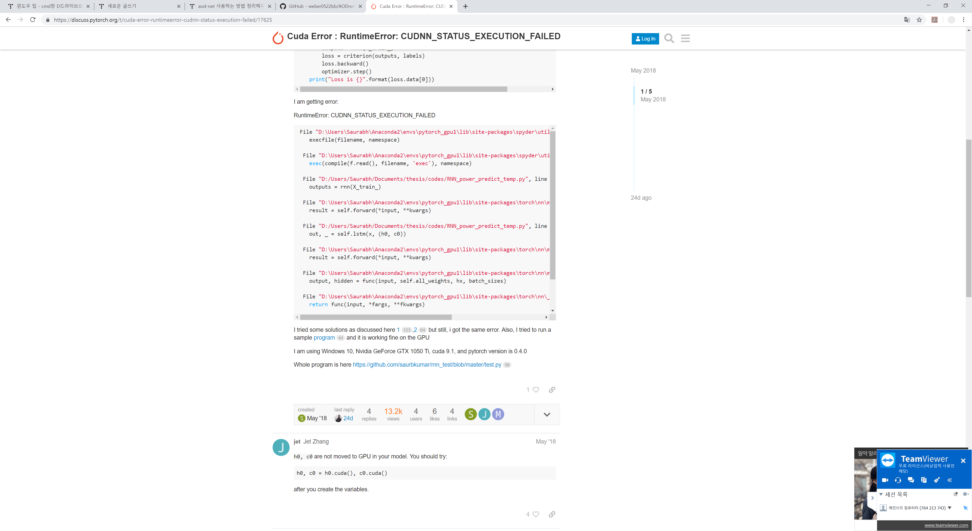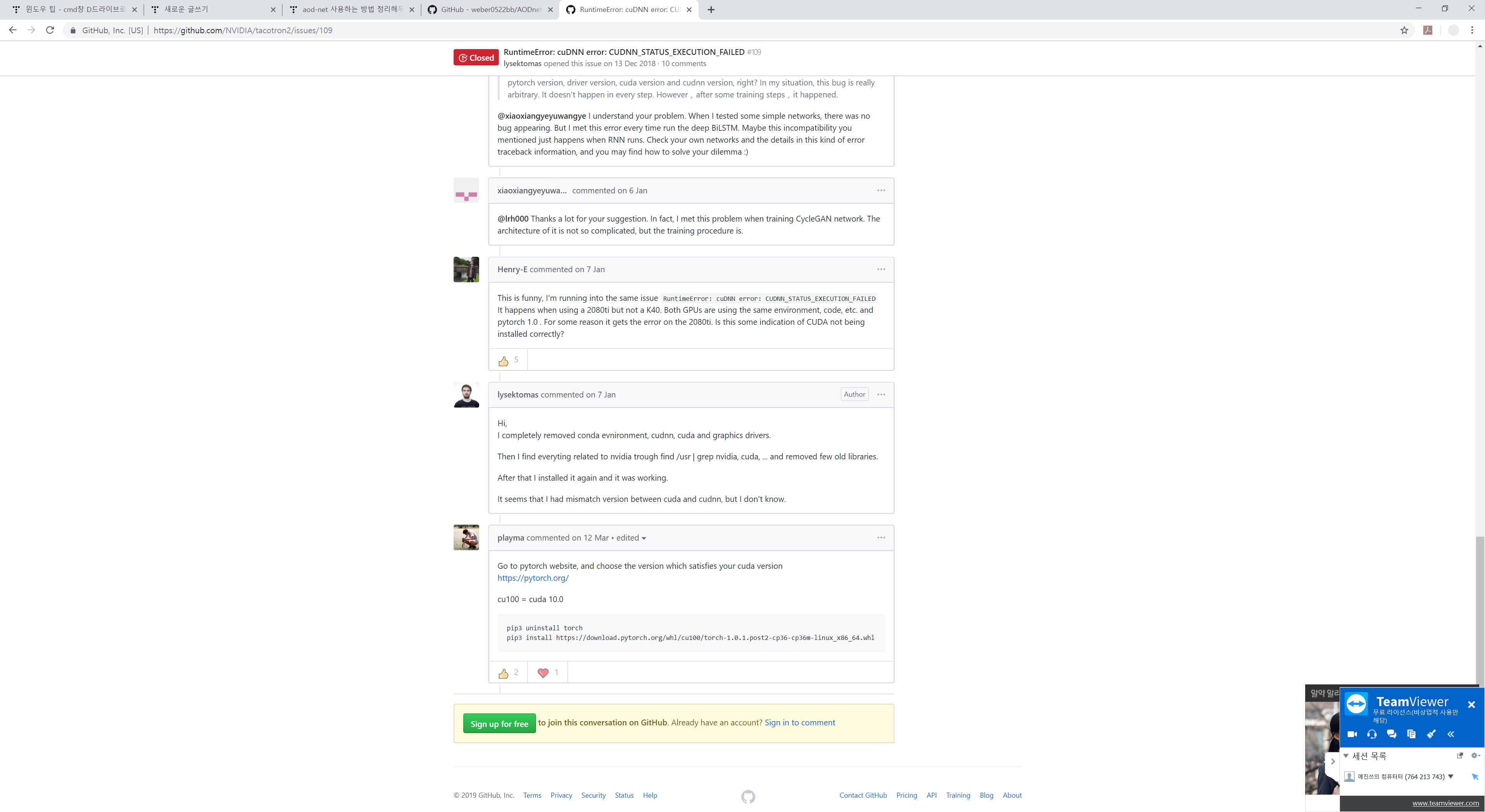 파이토치를 새로 깔아야 문제 원인을 정확하게 파악할 수 있을 것 같다