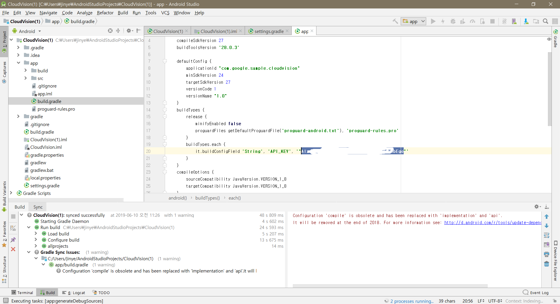 구글 비전 api키를 입력할 때 본문