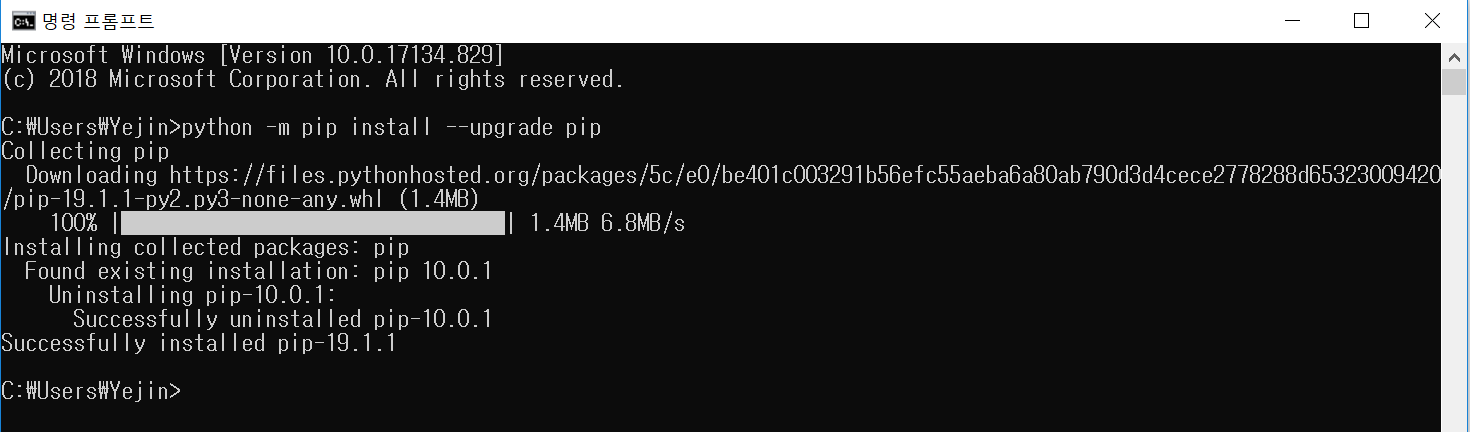 pip가 잘 업그레이드 된 것을 볼 수 있다