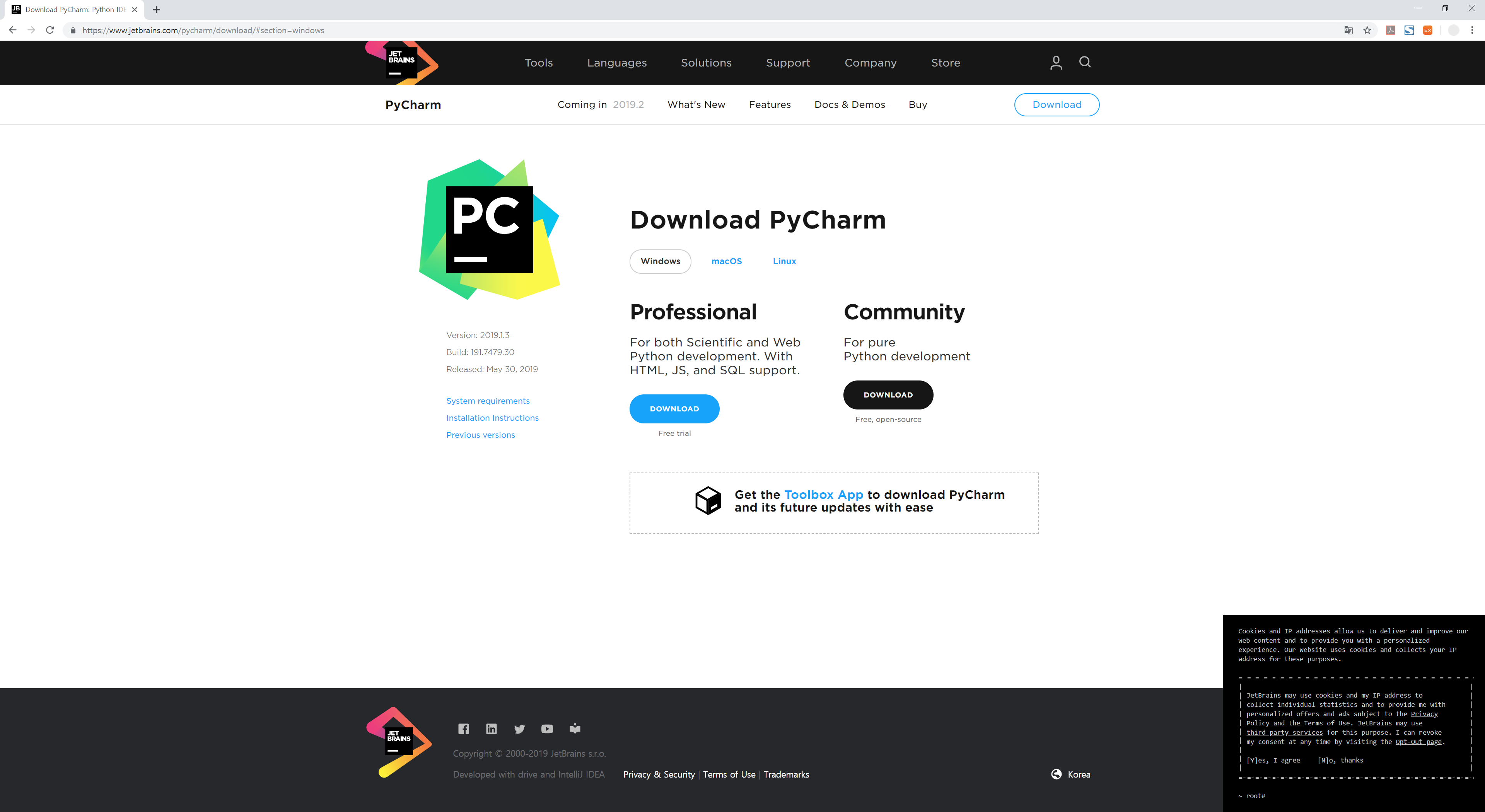 https://www.jetbrains.com/pycharm/download/#section=windows