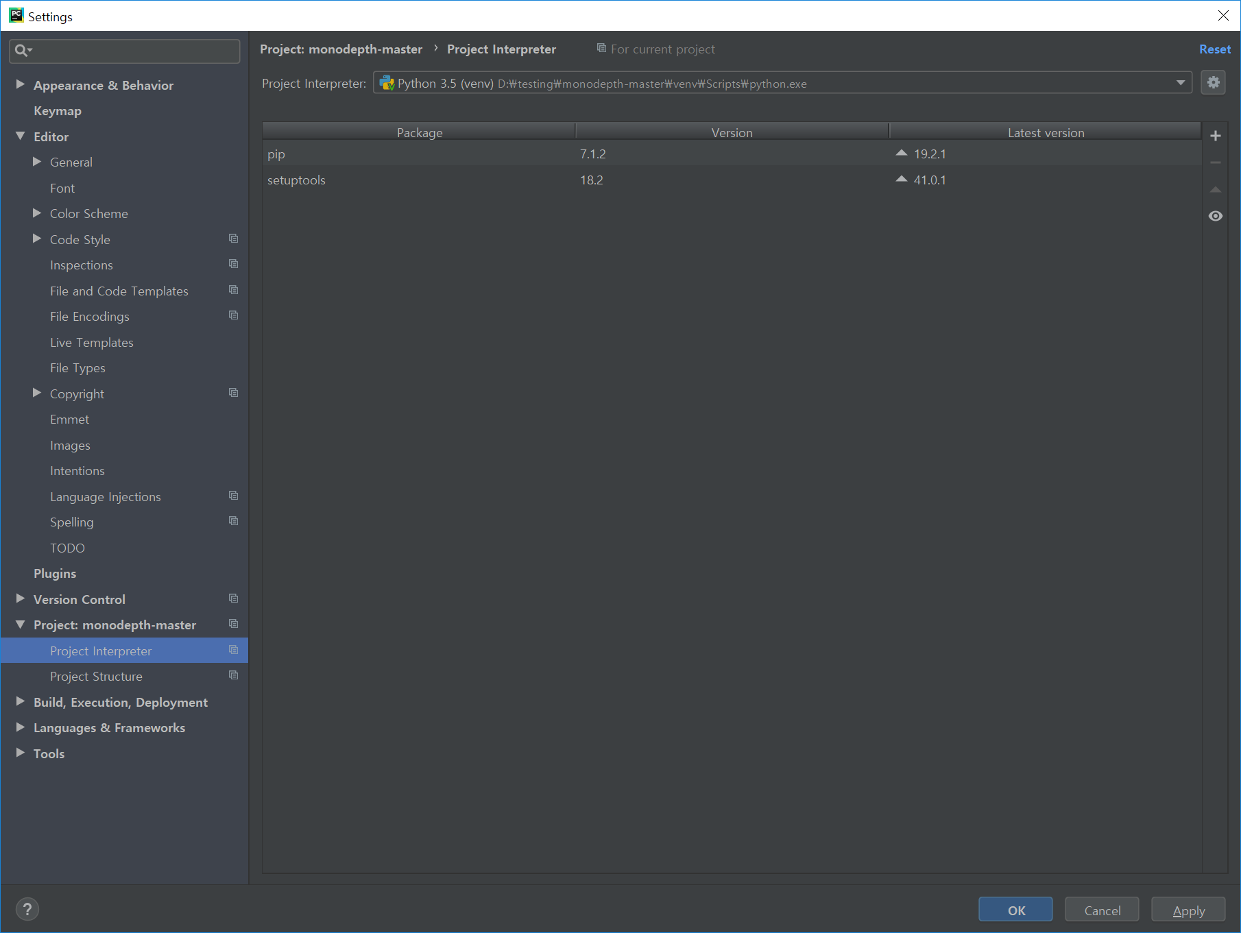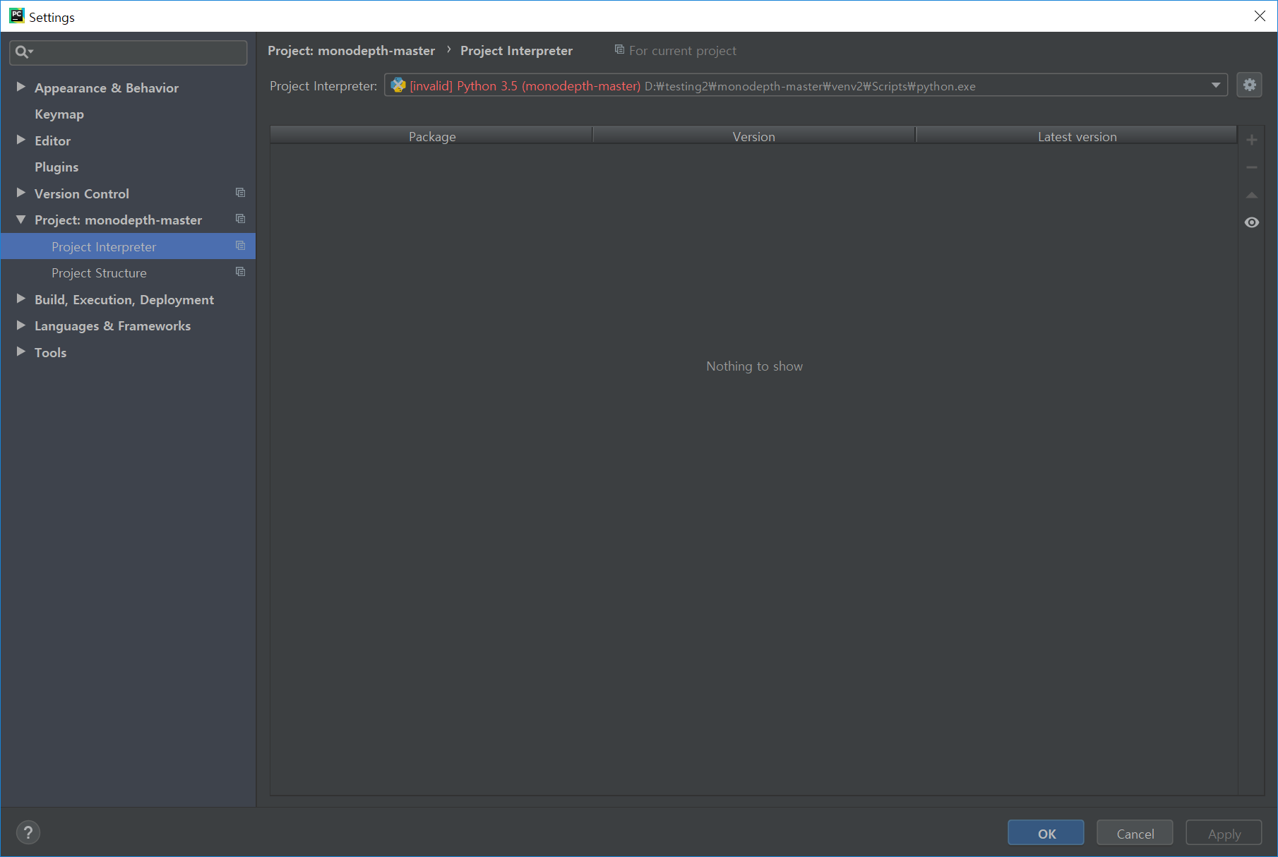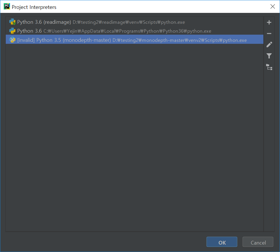 음 그러면 일단 이렇게 된 이상 프로젝트를 다시 열어서 그 프로젝트의 인터프리터의 상태를 확인해보아야 하는 상황이 왔다.