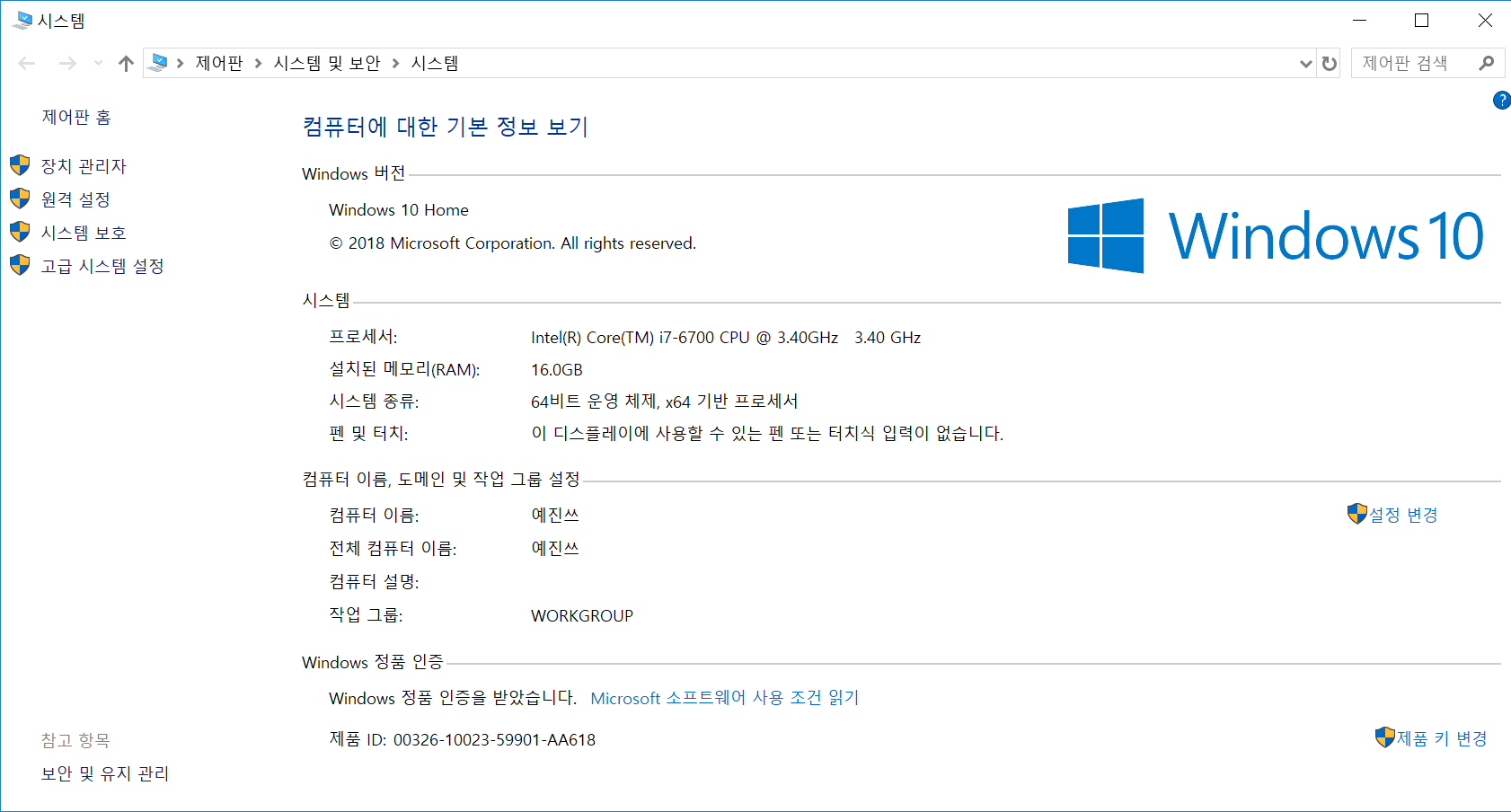 여기서 고급 시스템 설정에 들어간다.