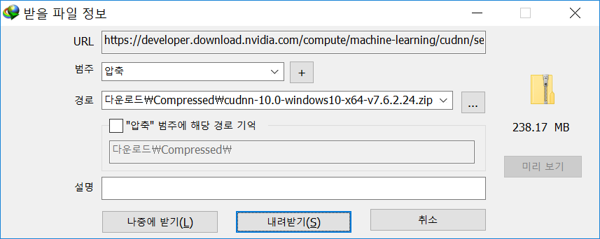 여기서 나는 Windows 10에 대한 cudnn 라이브러리를 다운로드 받습니다.
