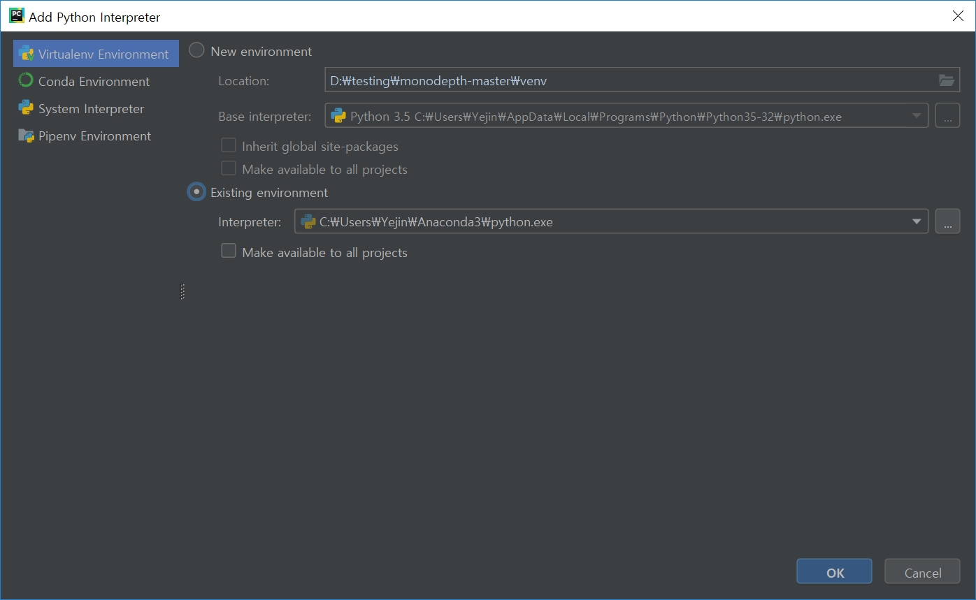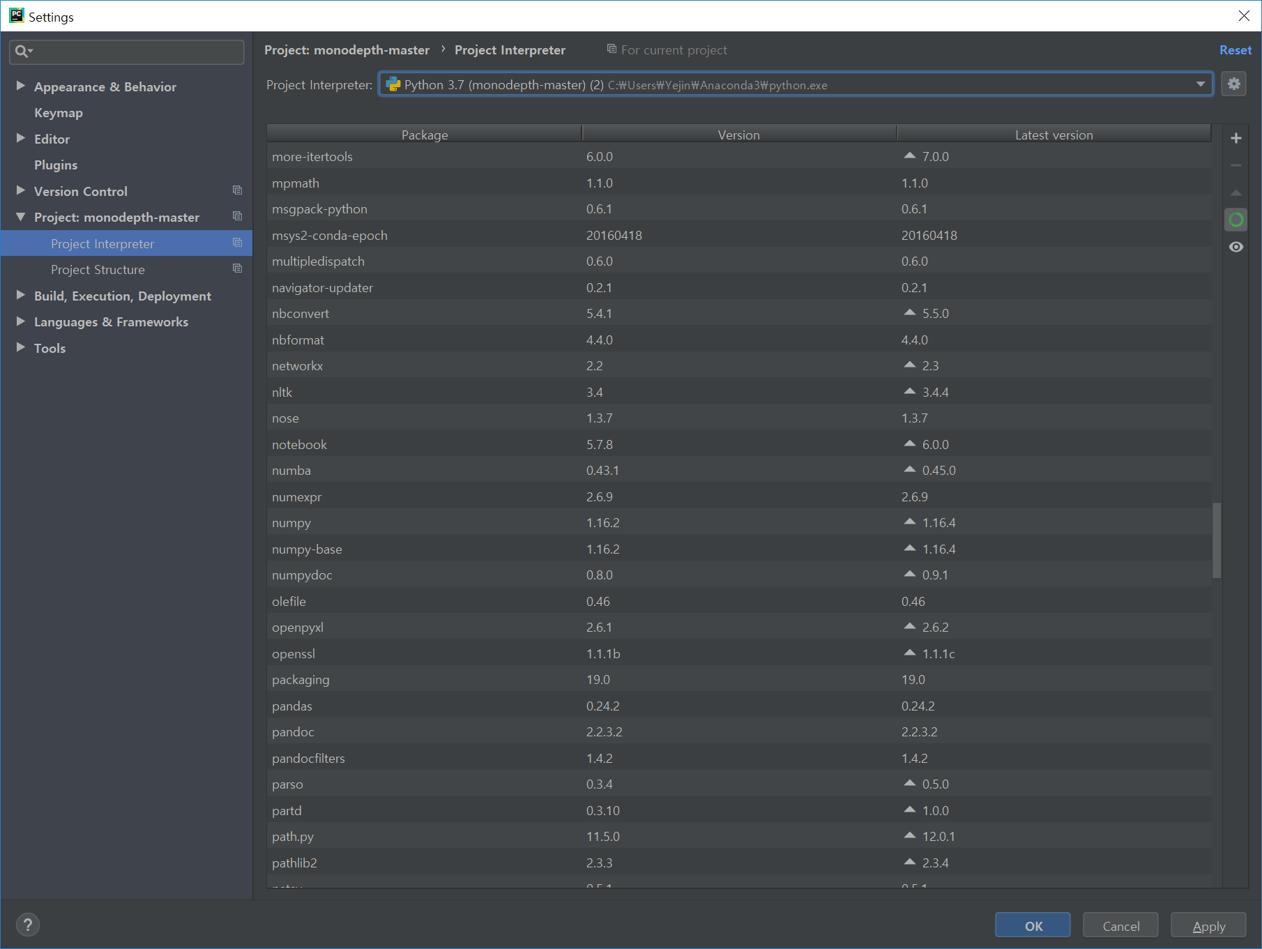 일단은 아나콘다가 잇으니까 경로 설정을 다시 해주기로 한다.