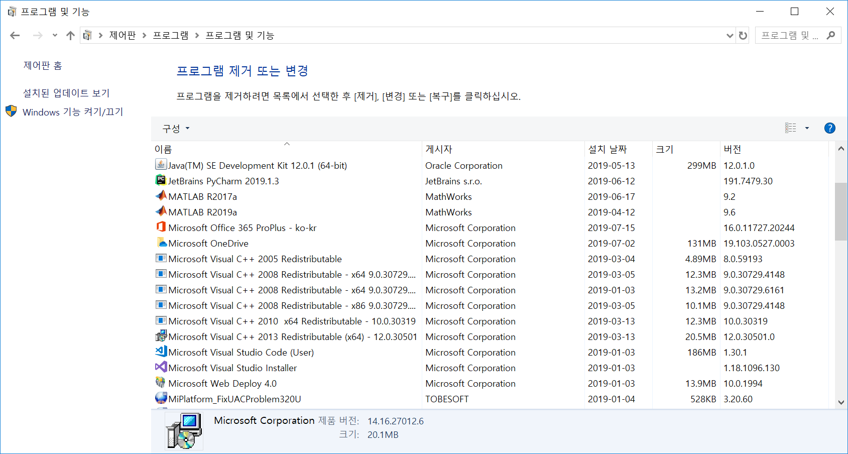 내 제어판에 들어가보니까 진짜 2015 버전이 없다는 것을 확인할 수 있었다.