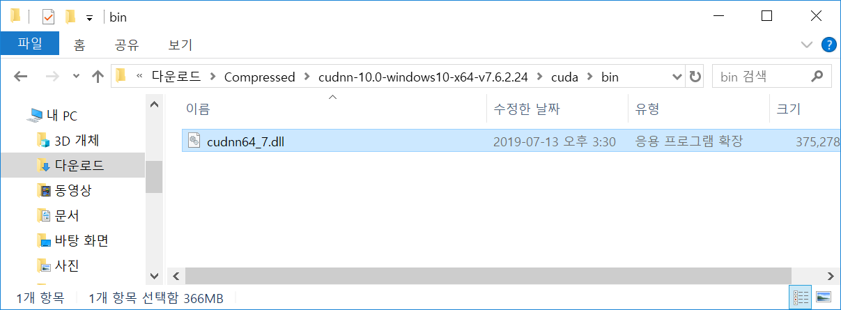 그래서 cudnn 64 버전을 까는 것을 다시 복습해보도록 한다.