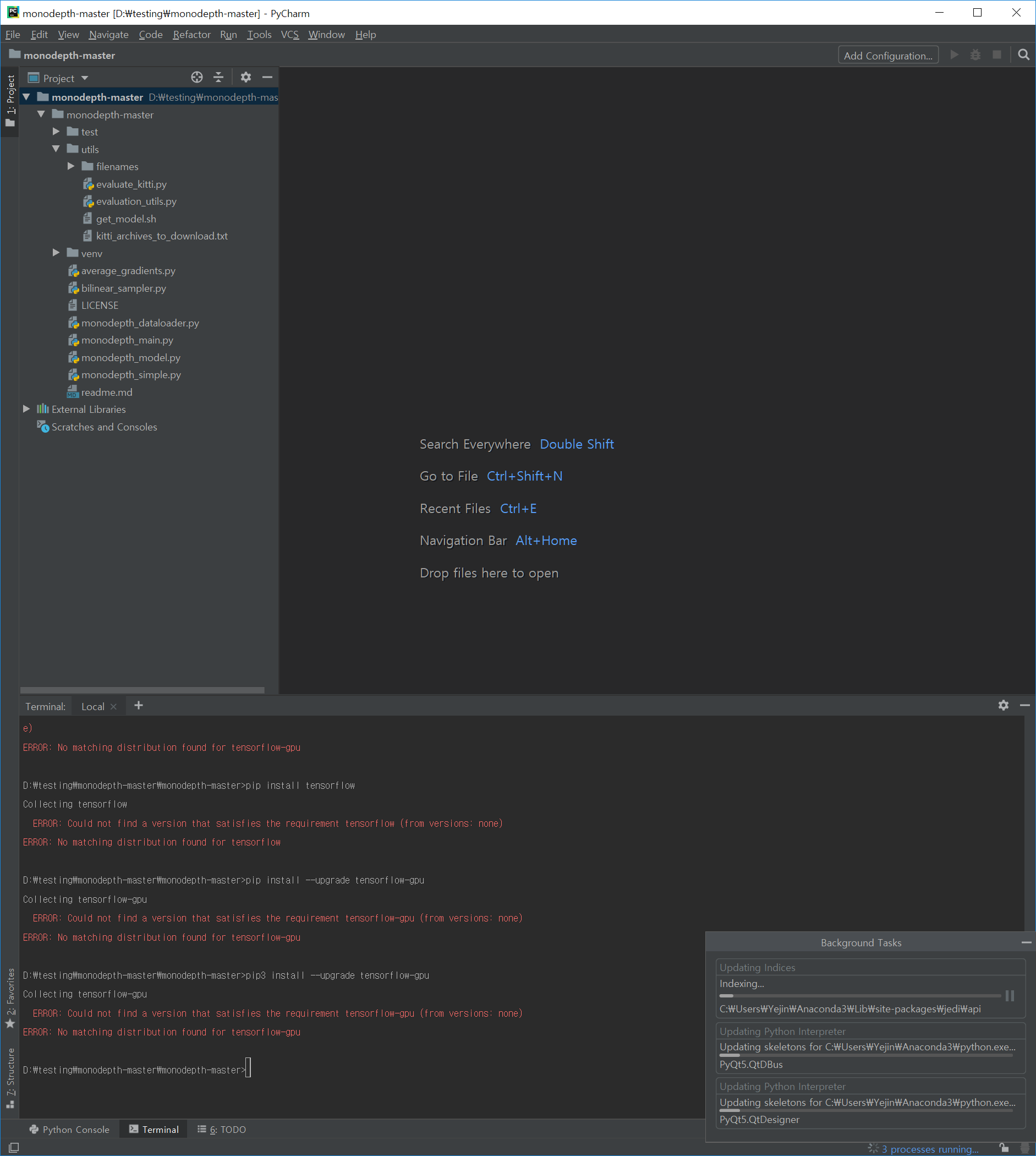와 근데 이렇게 해도 안되어서 그냥 텐서플로 일단 지워버렸다.