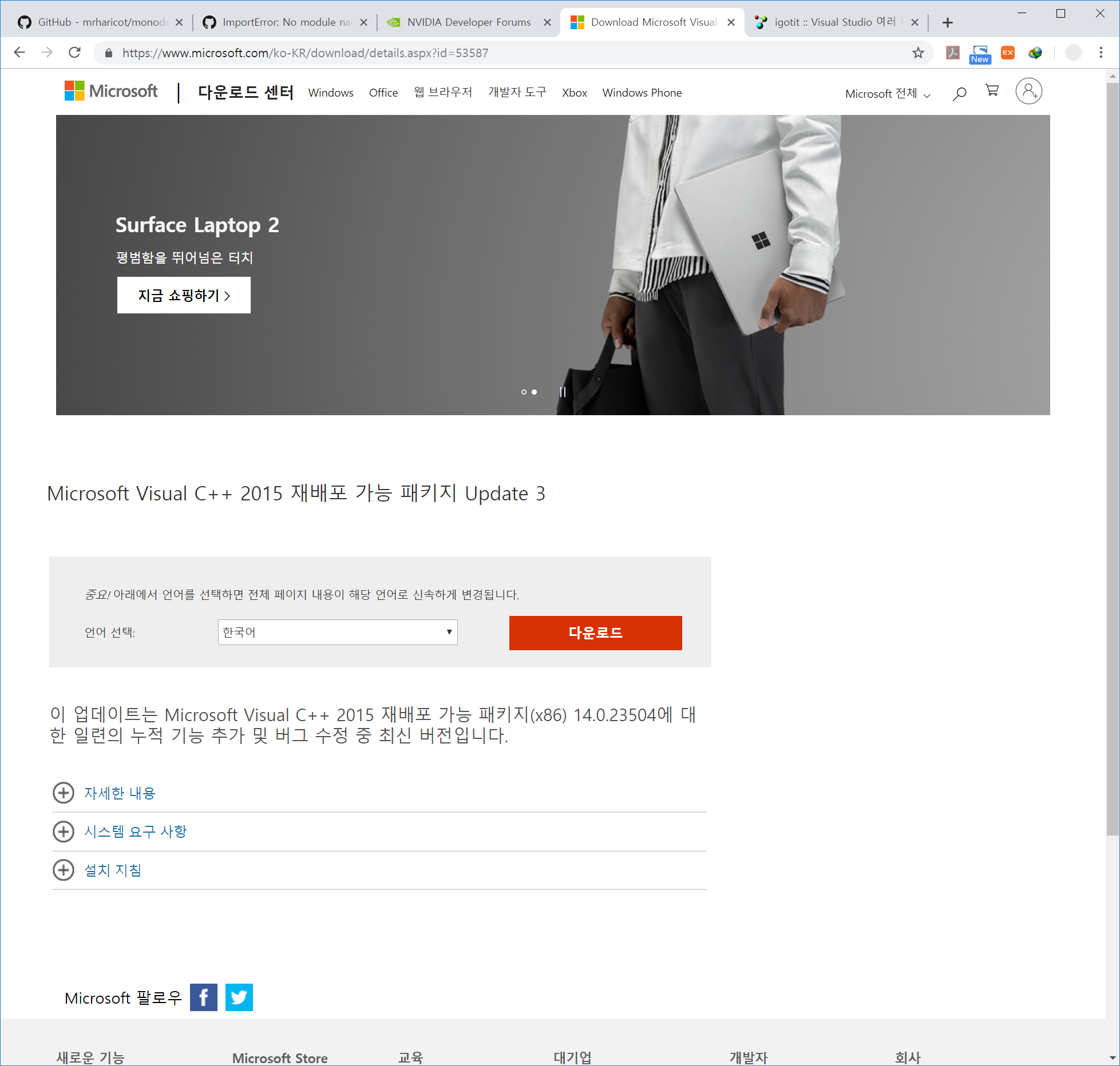 Microsoft Visual C++ 2015 재배포 가능 패키지 Update 3
