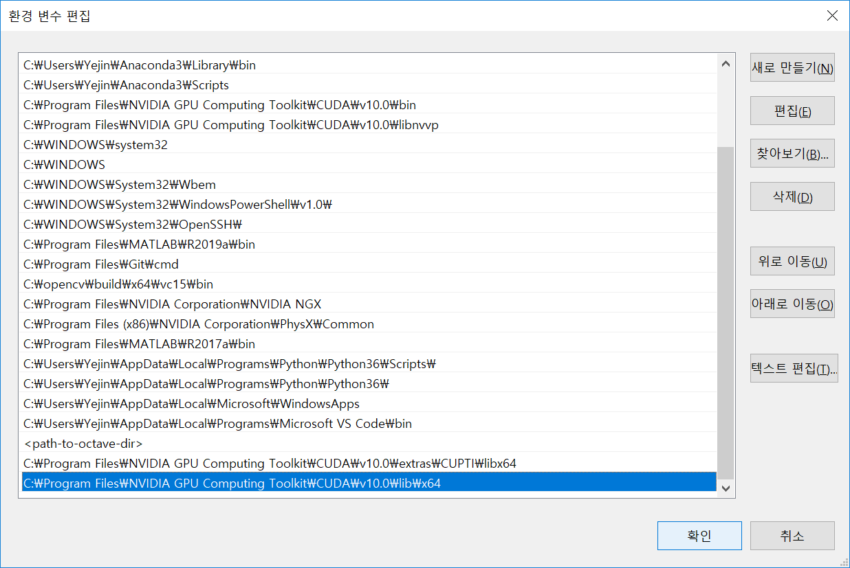 cudnn 64를 넣었던 기억이 있는데, 그거는 예전에 내가 uninstall한 tensorflow에 있는 것이었기 때문에 에러가 나는 것으로 추정한다.