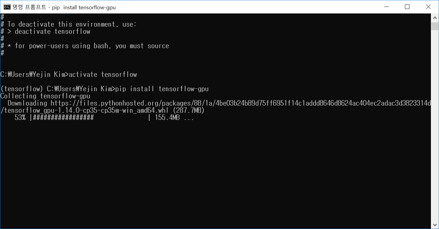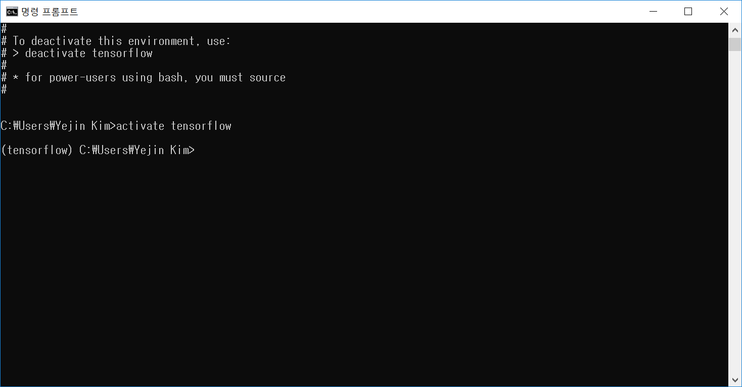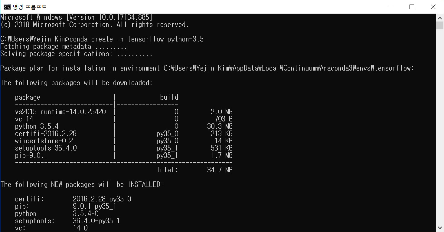 일단 tensorflow라는 이름의 가상 환경 생성 완료