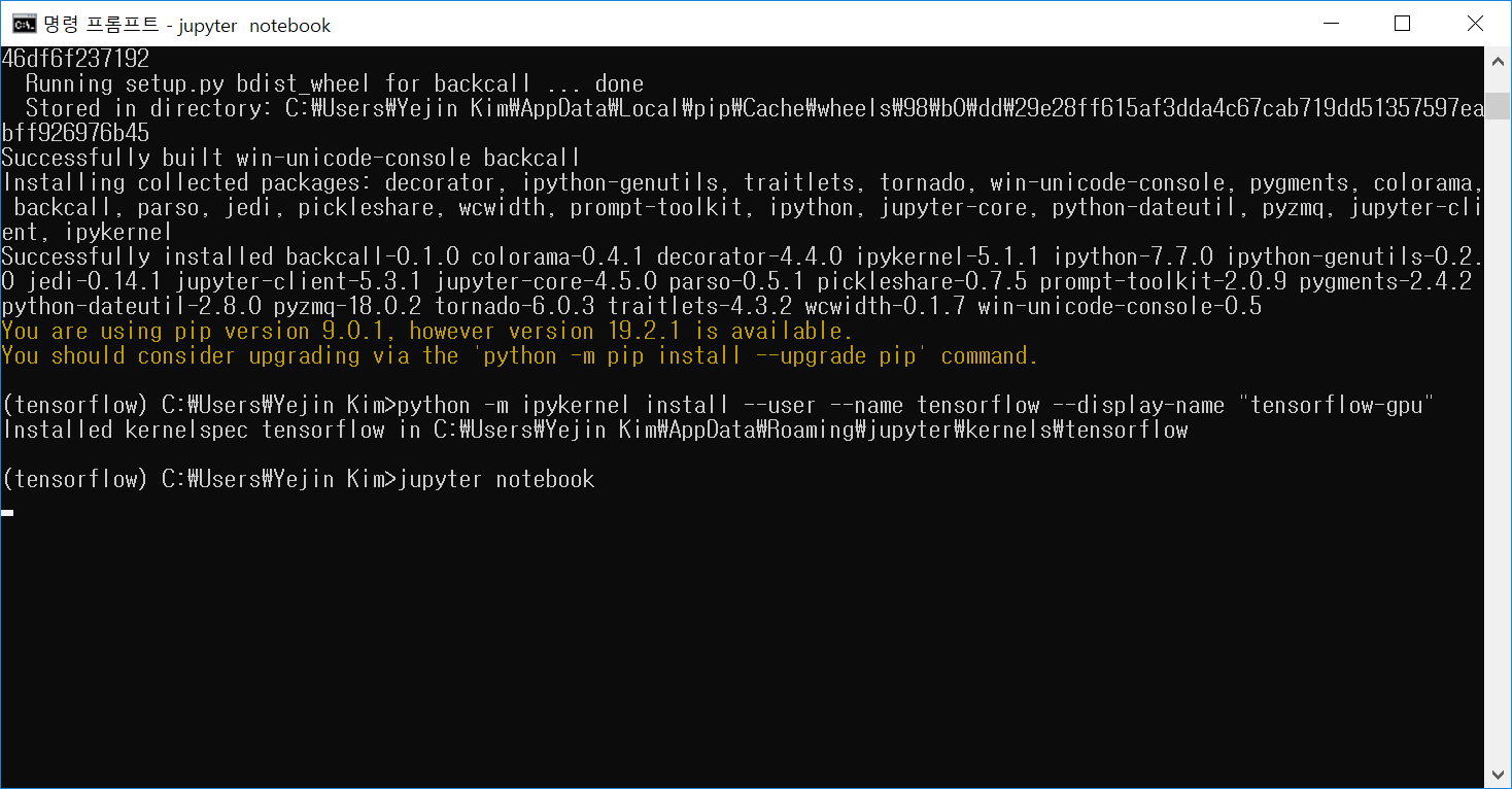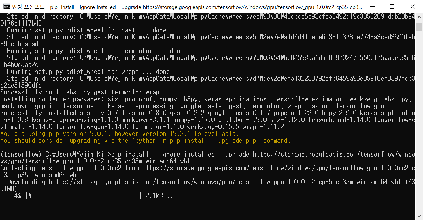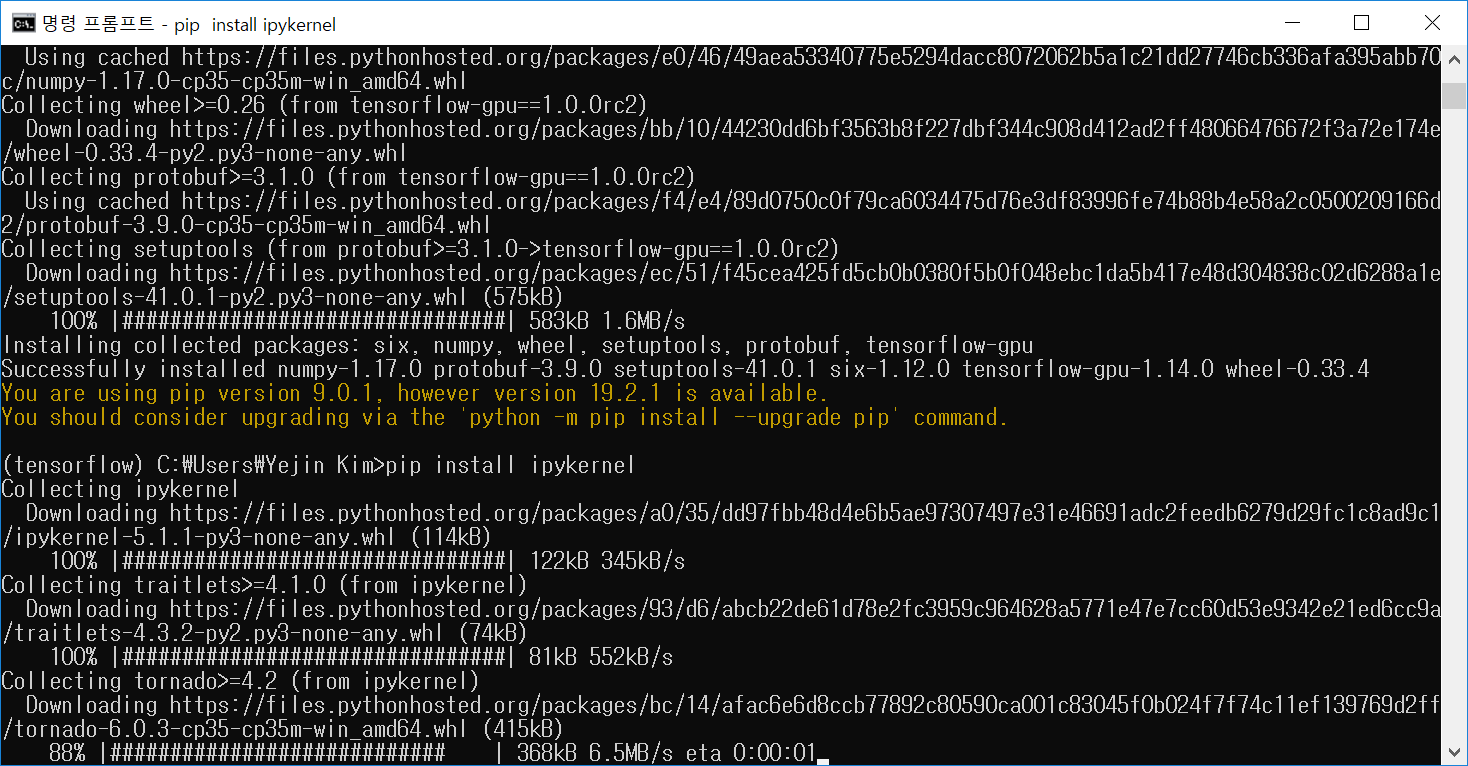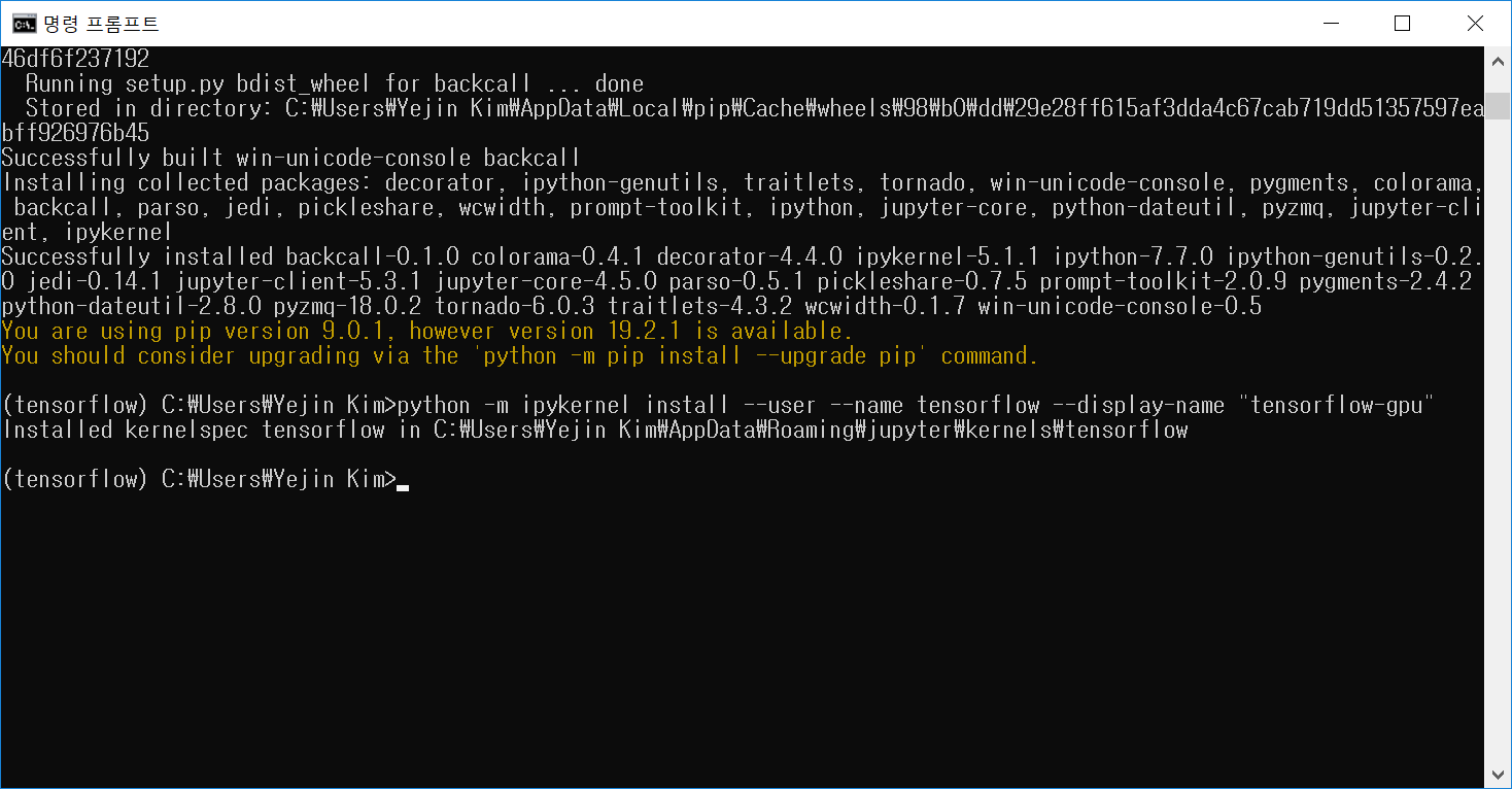 일단 tensorflow라는 이름의 가상 환경 생성 완료