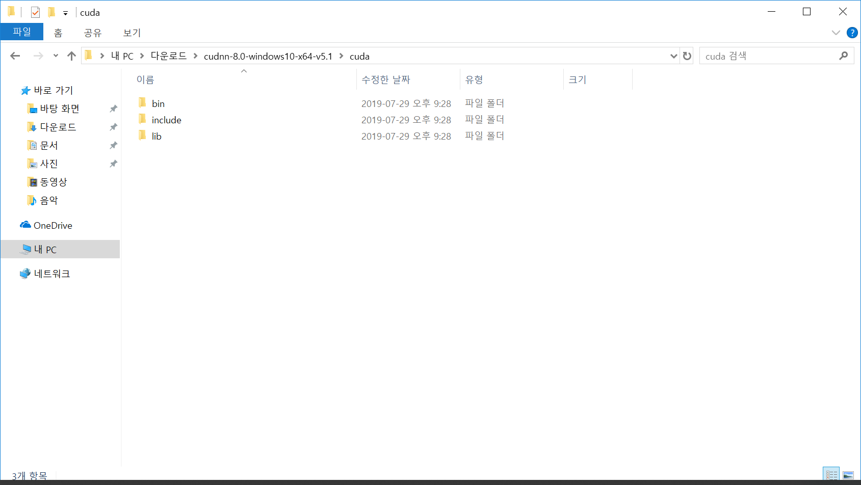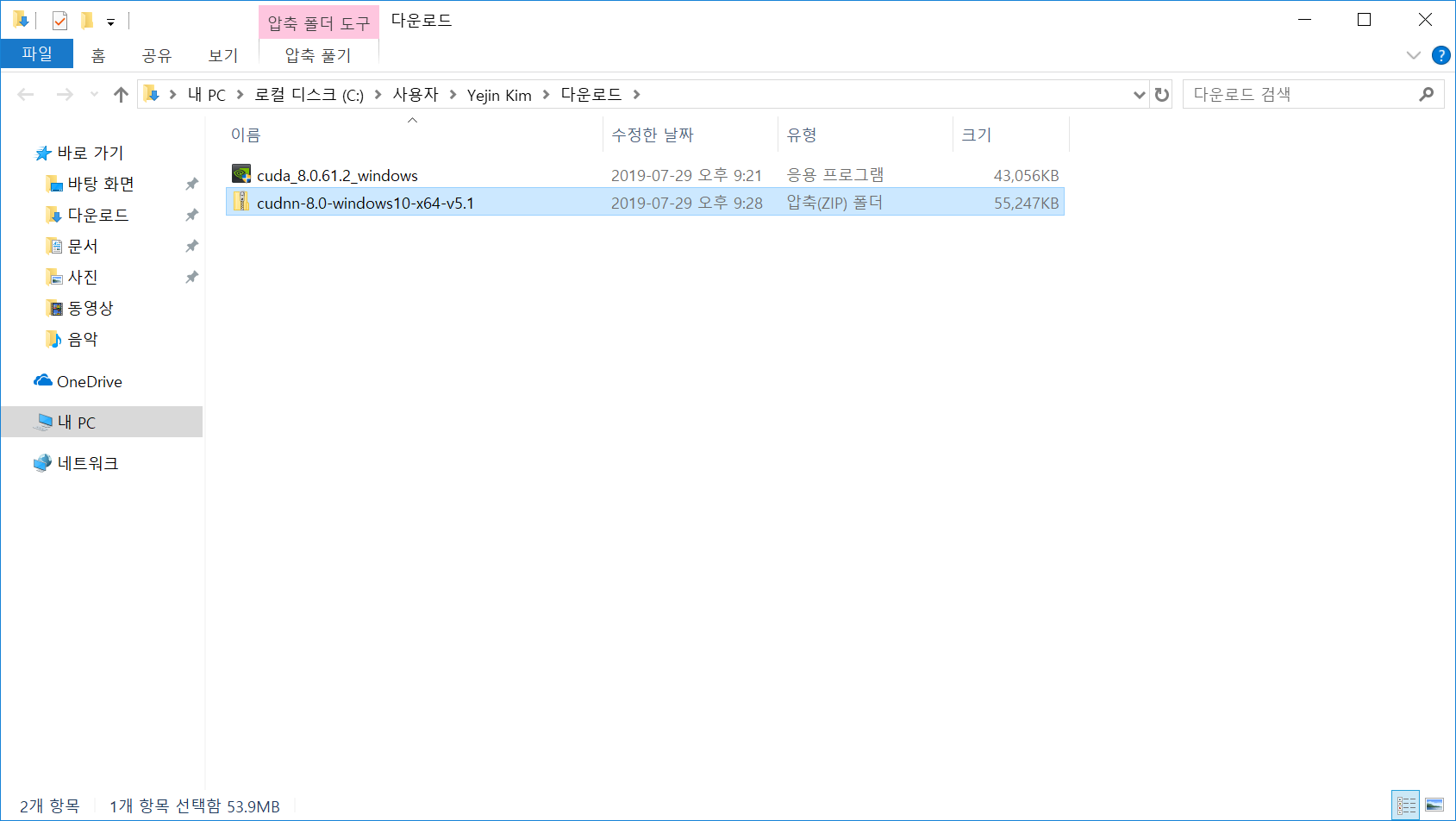 일단 나는 cuda와 cudnn을 받을 것이다.
