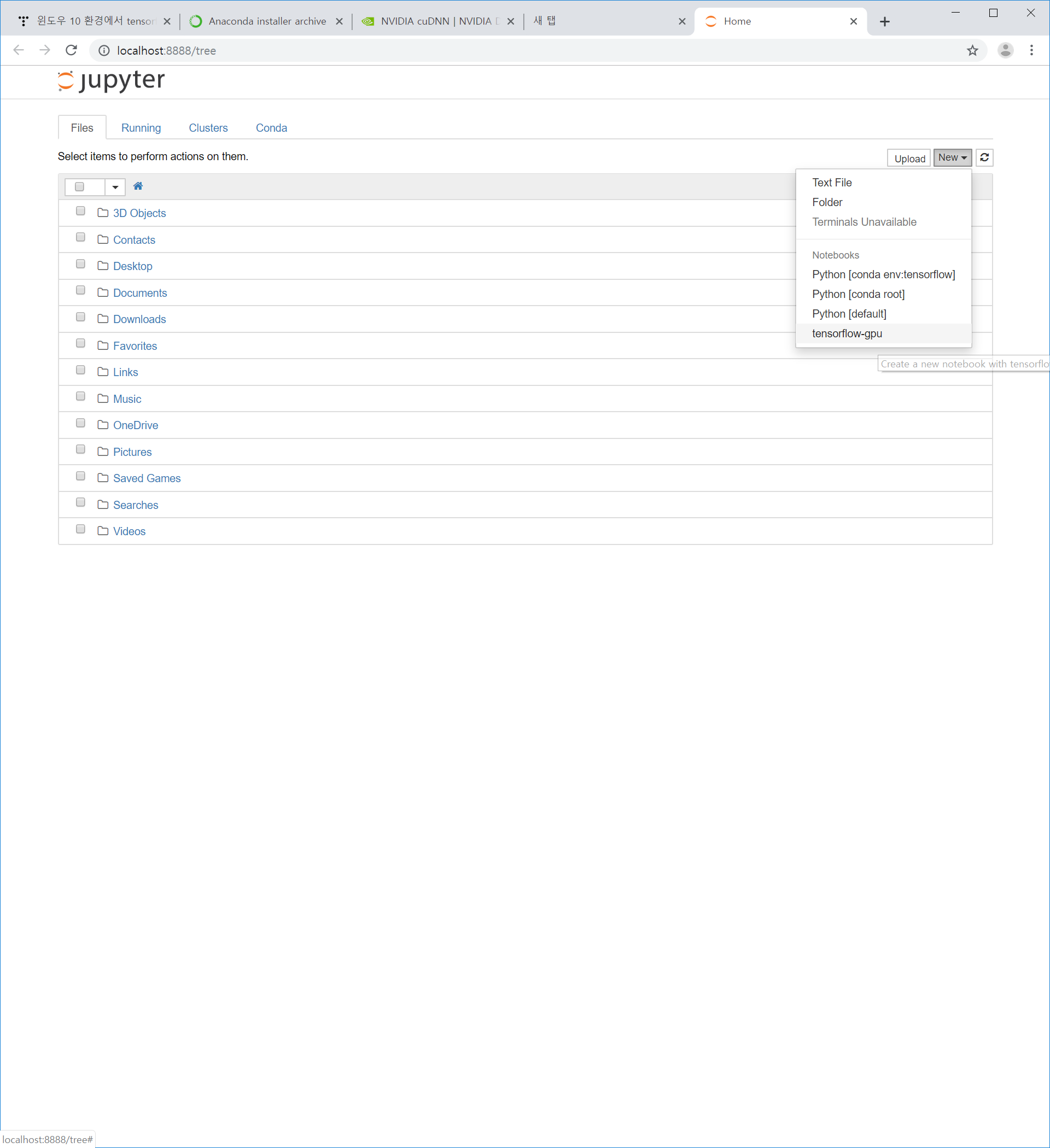 윈도우 10 환경에서 tensorflow gpu 설치하기(1)!!
