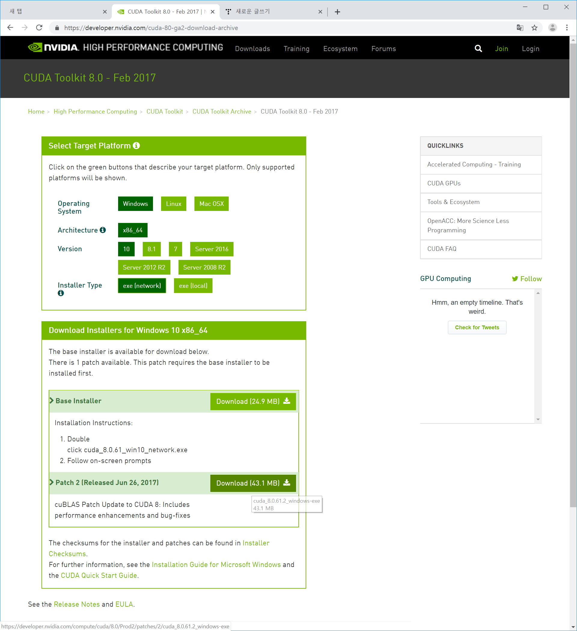 https://developer.nvidia.com/cuda-80-ga2-download-archive 여기로 가라고 해서 여기로 왔다.