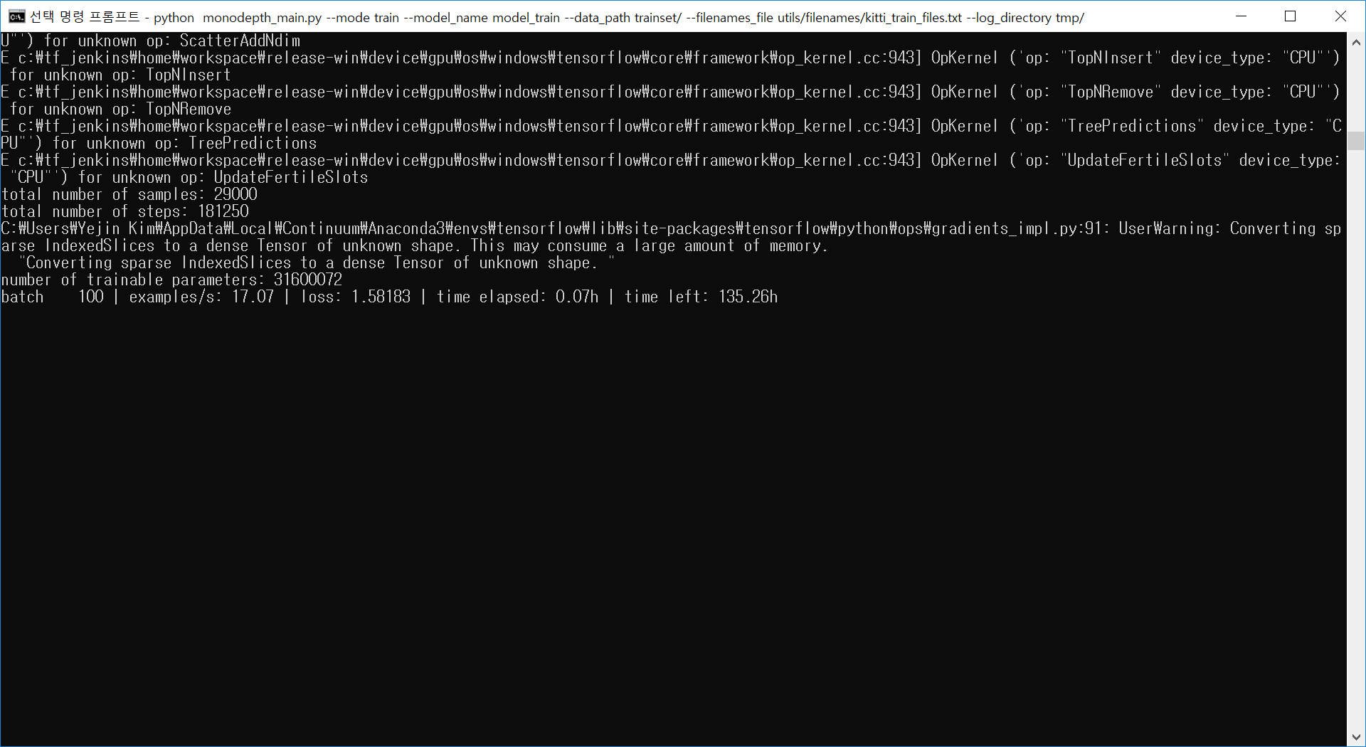 python monodepth_main.py --mode train --model_name model_train --data_path trainset/ --filenames_file utils/filenames/kitti_train_files.txt --log_directory tmp/