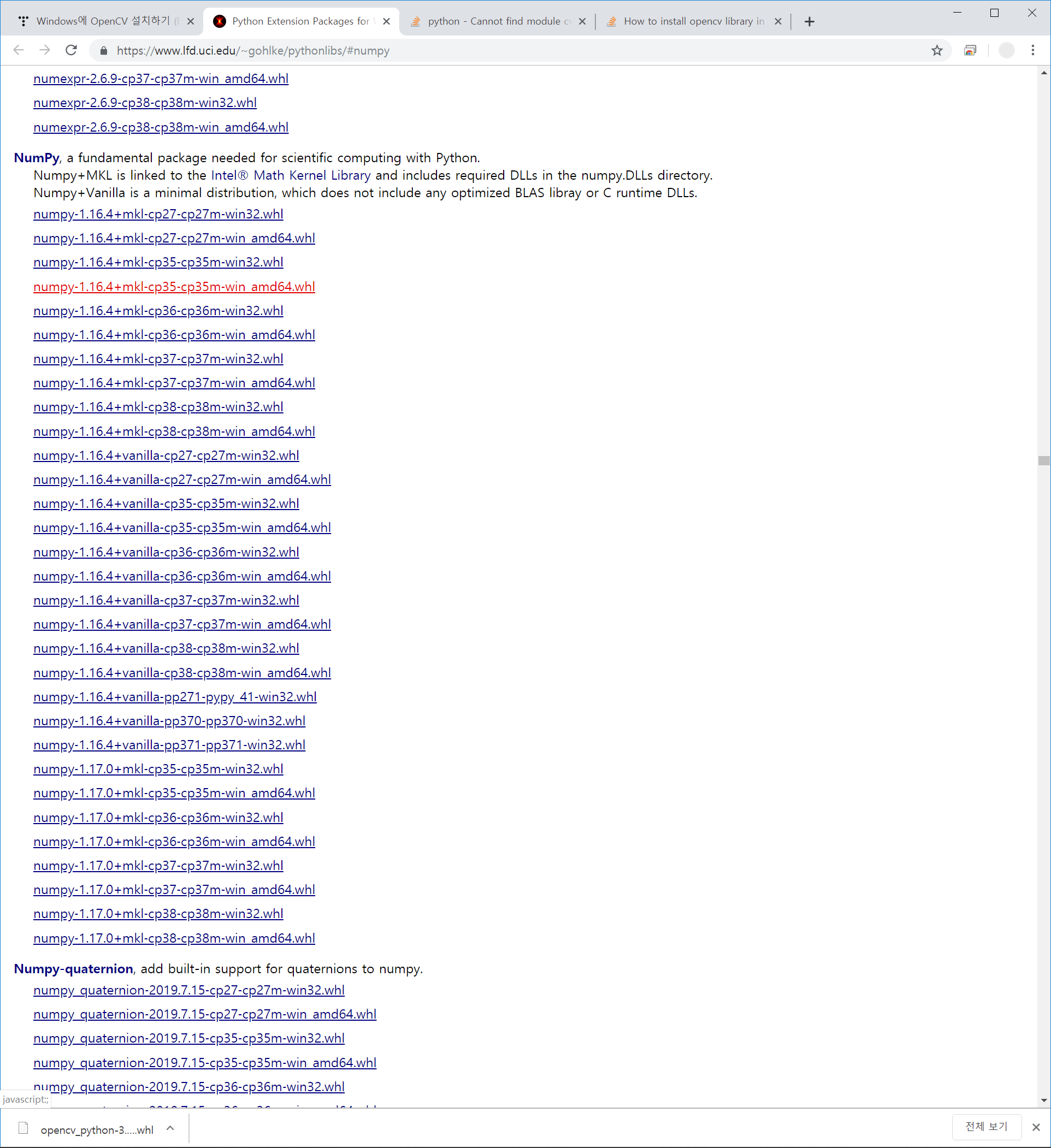 Windows에 OpenCV 설치하기 (by wheel)