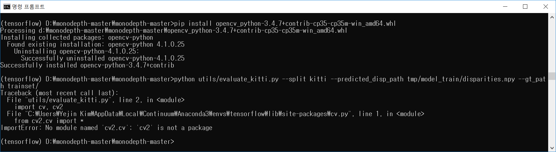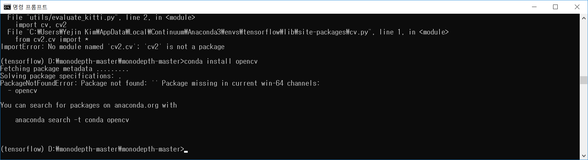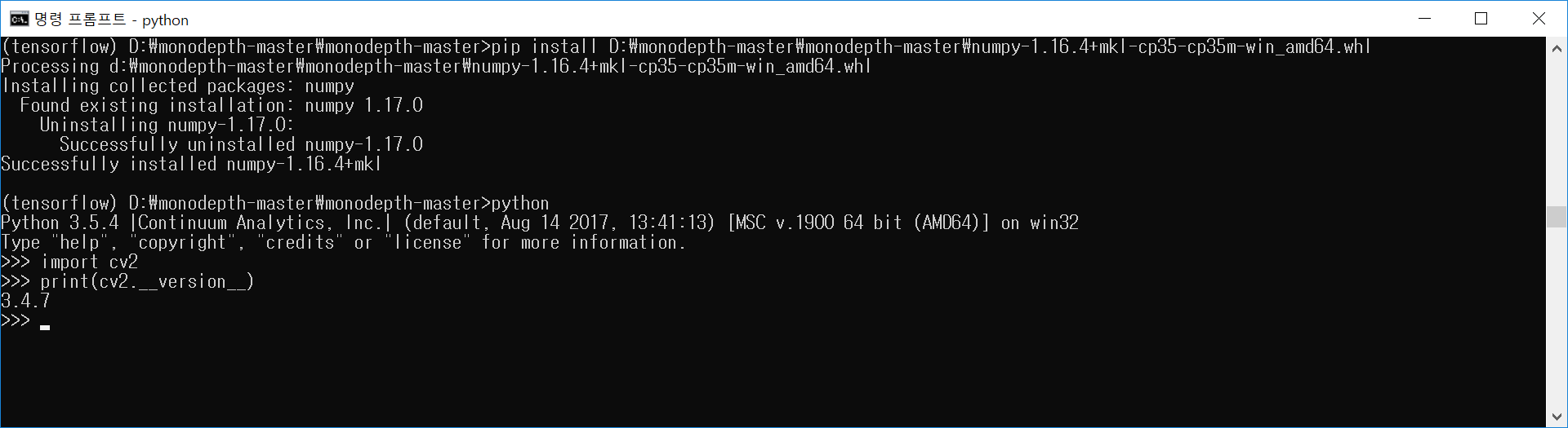 (tensorflow) D:\monodepth-master\monodepth-master>pip install cv
