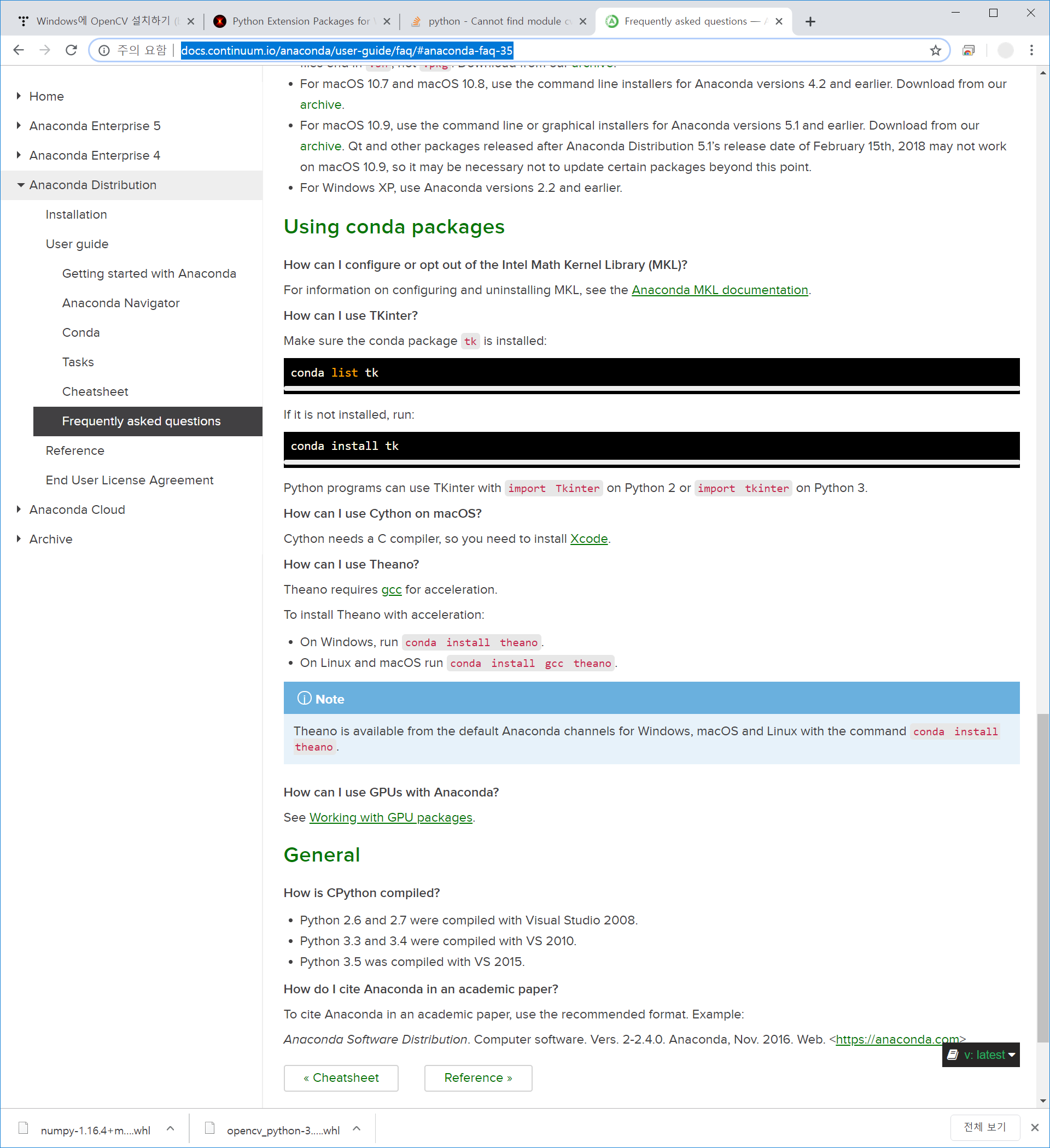 여기서 이제 계속 들어가다 보면 이렇게 뭐 Theano를 설치하라는데,
