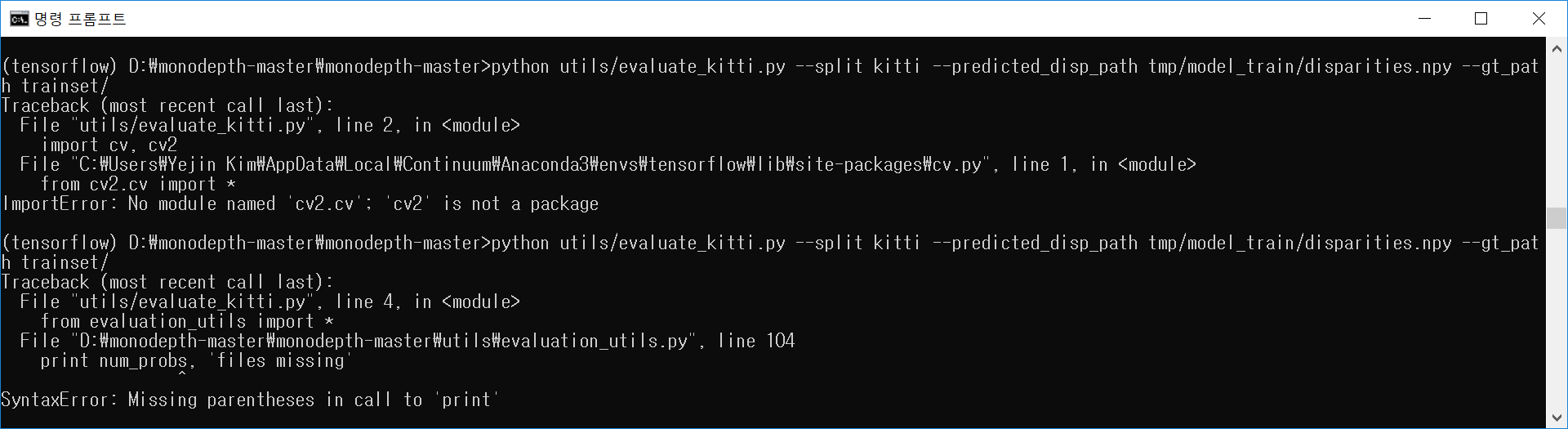 이제 cv2가 말썽이군요.
