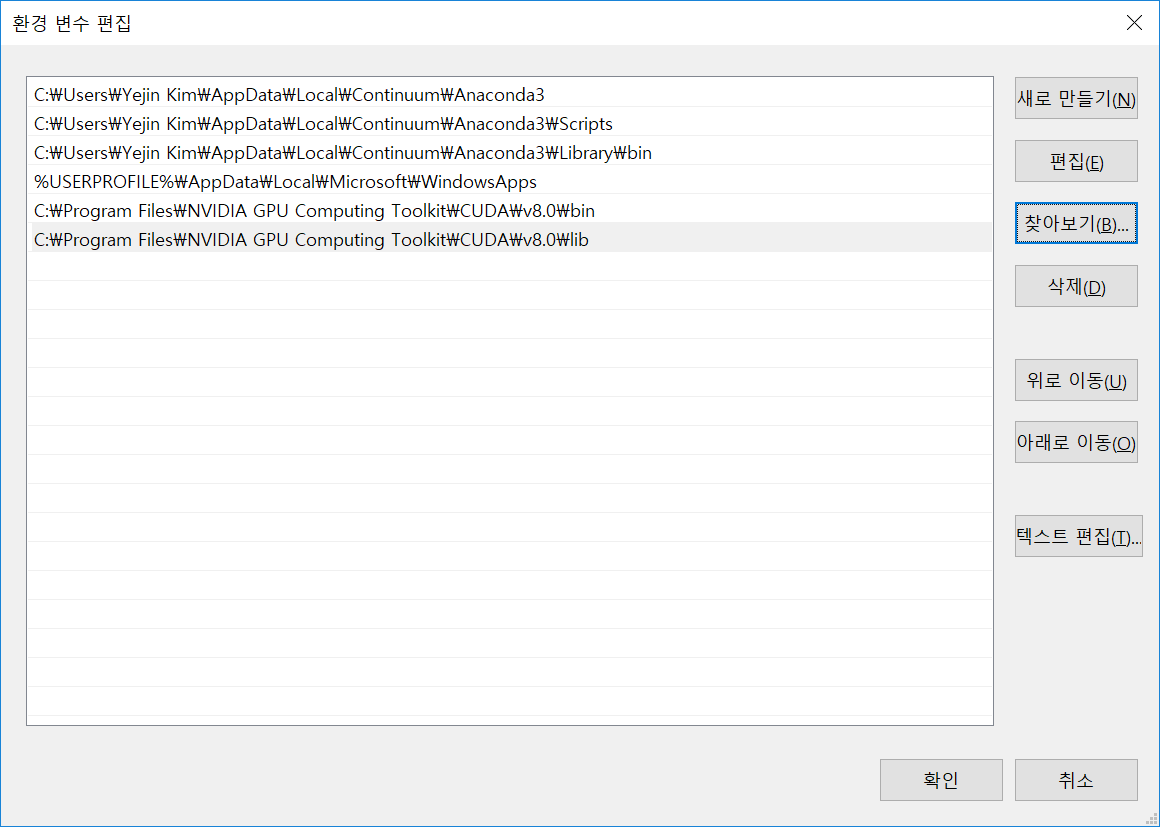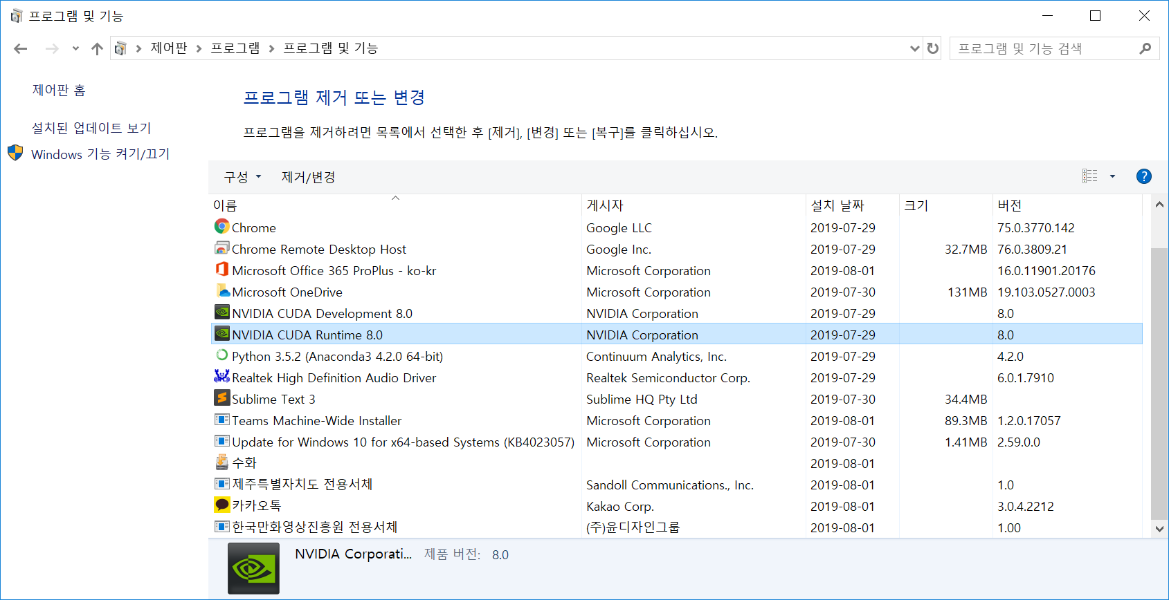그래서 쿠다를 지우고 다시 깔아보려고 한다.