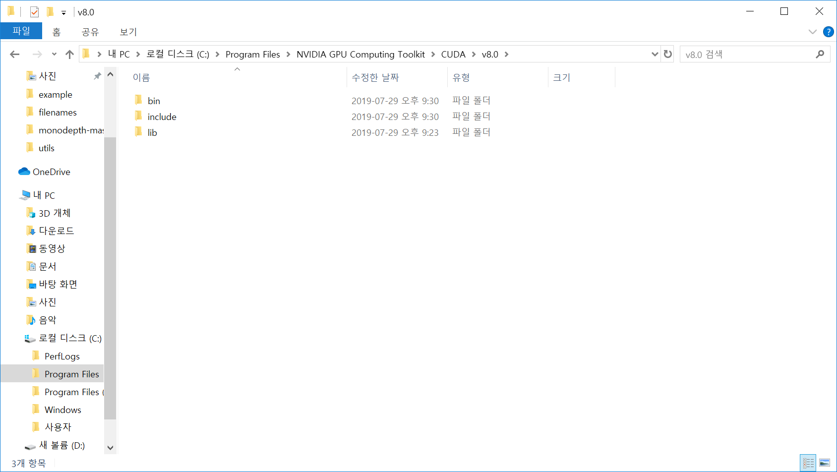 다른 블로그의 글과 비교를 해보니까 나의 cuda가 좀 이상하게 설치된 것 같다.