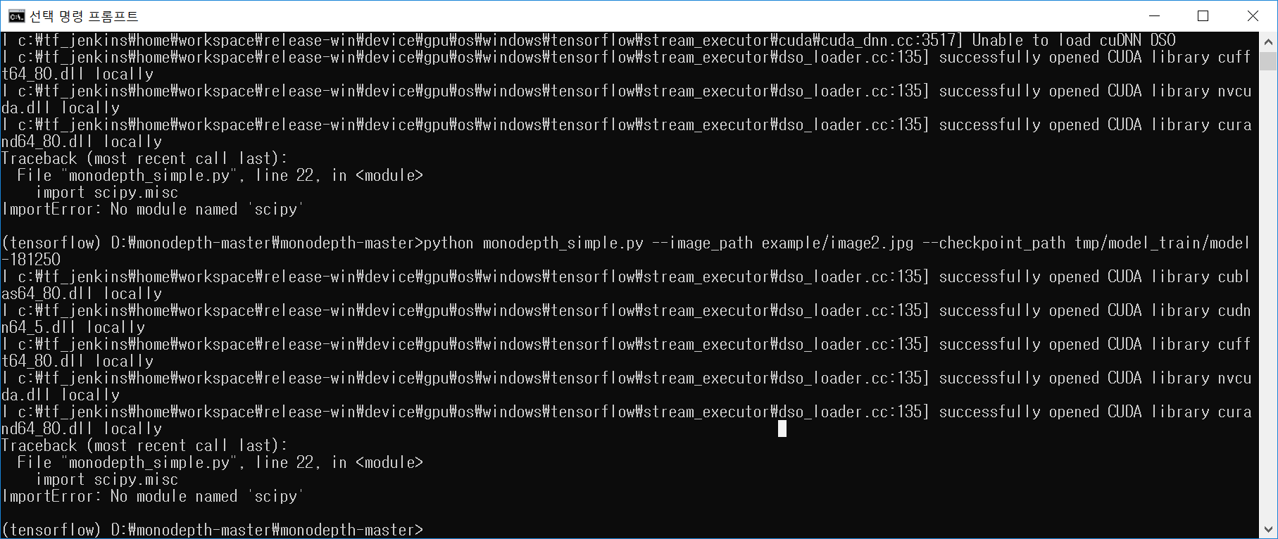 아까는 gpu관련 에러랑 cudnn에러가 많이 났는데,