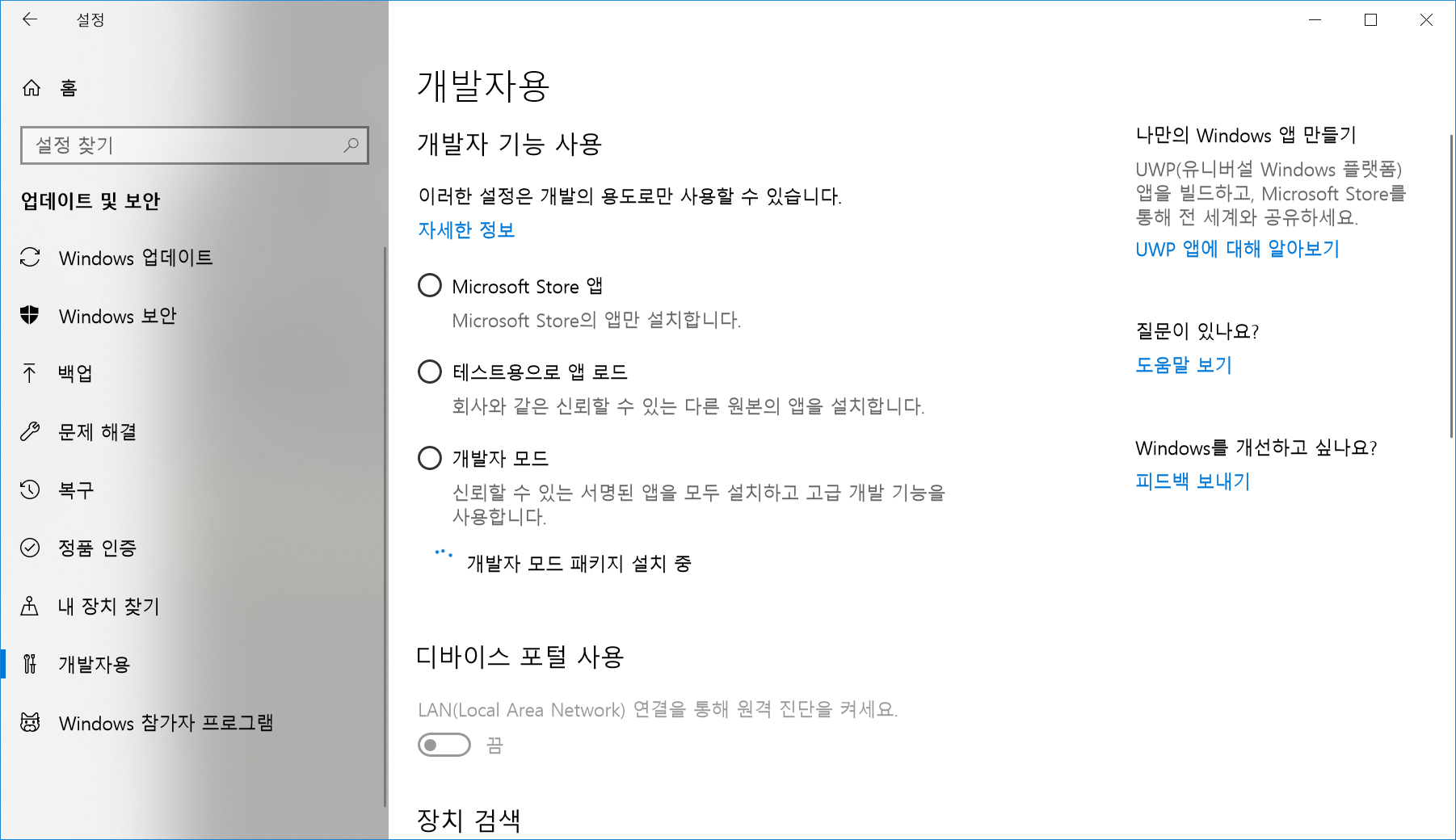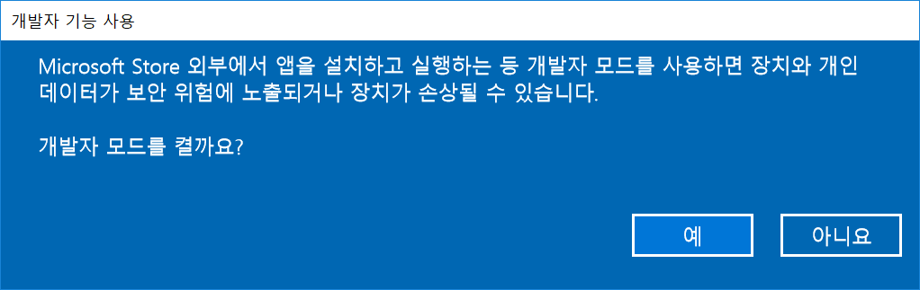 여기서 개발자 모드를 켭니다.