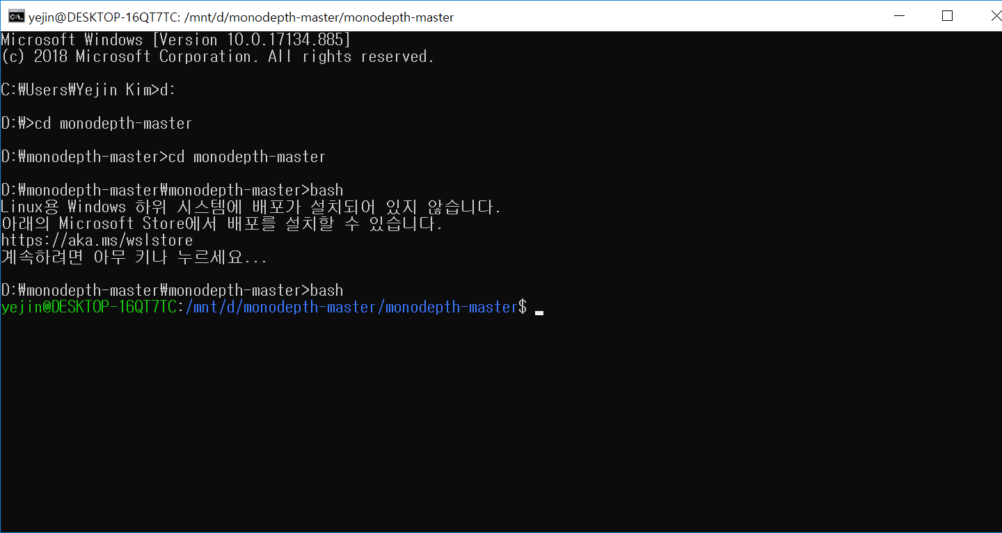 bash가 잘 안되는 것을 볼 수 있습니다.