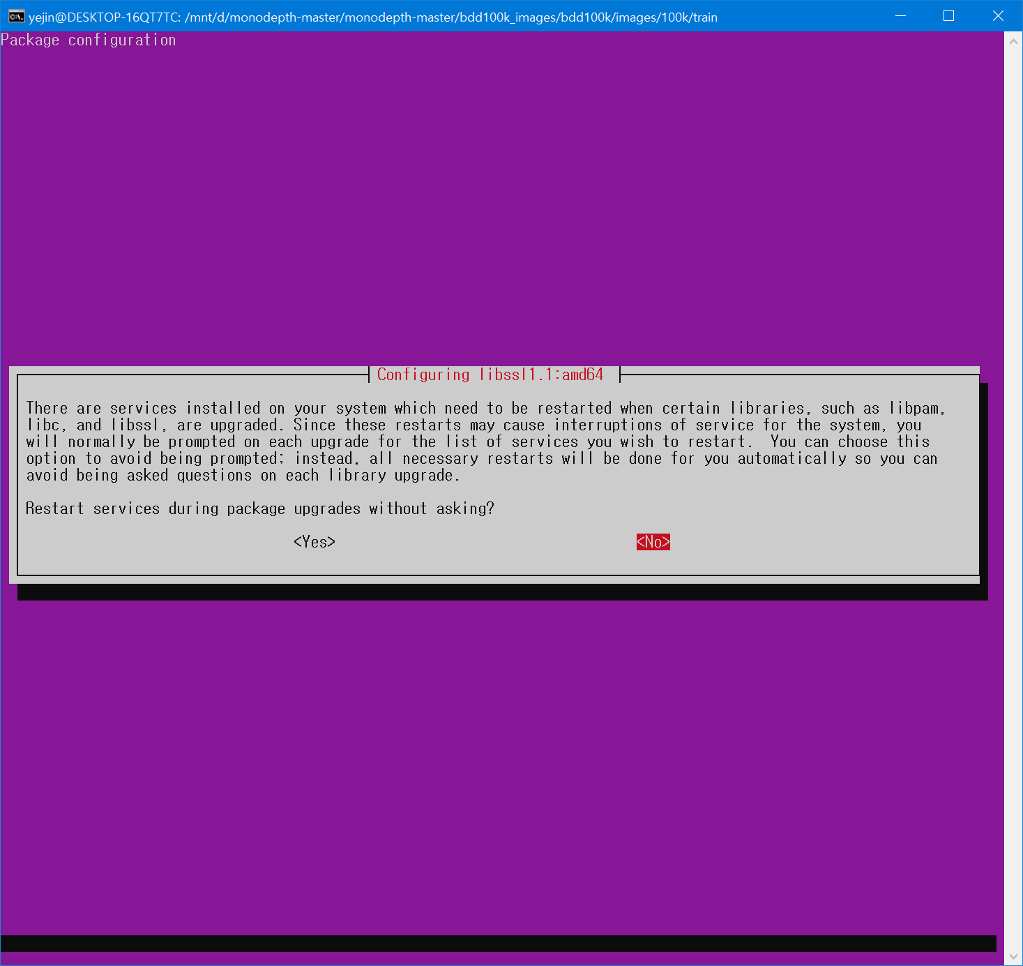 음 패키지를 바꿔버리는 것 같은데 no로 해야될 것같다 엇 이미 바꿔진건가 아 바꿔졌네...,일단 no 껏다 켜야하는것같으니까