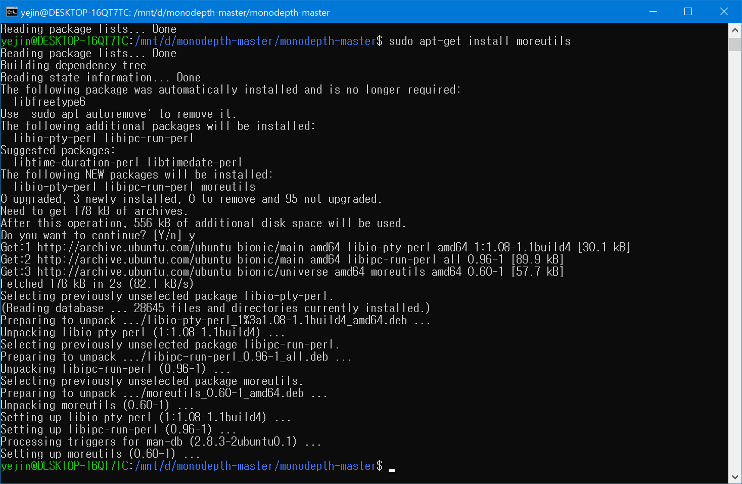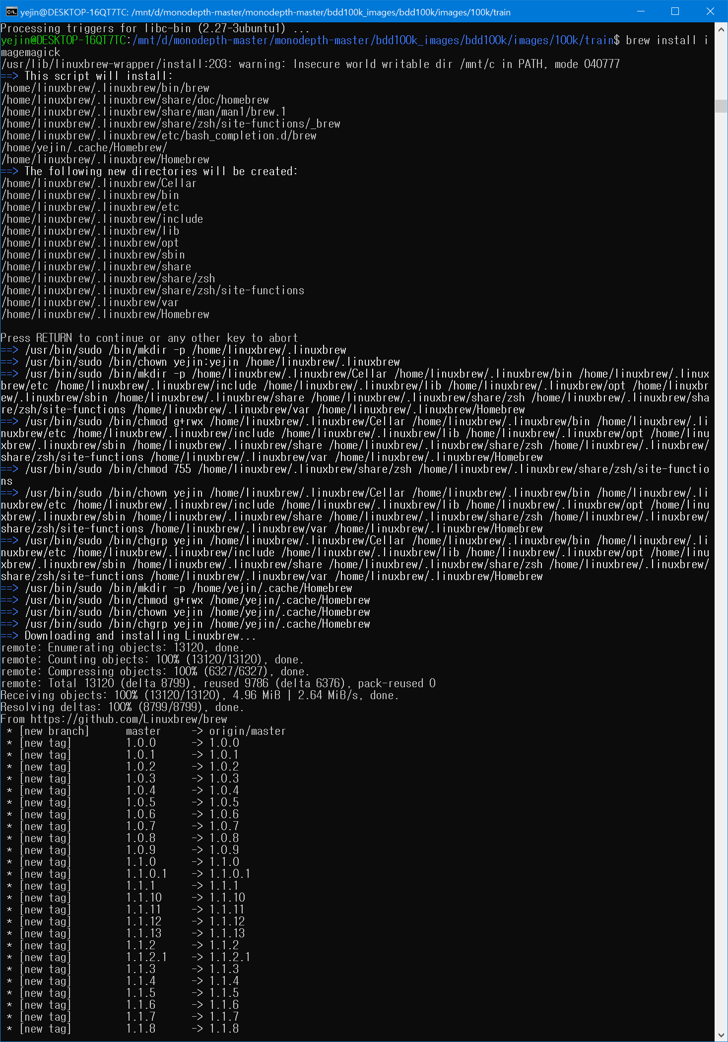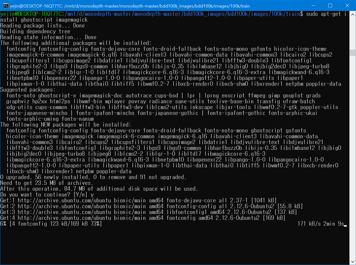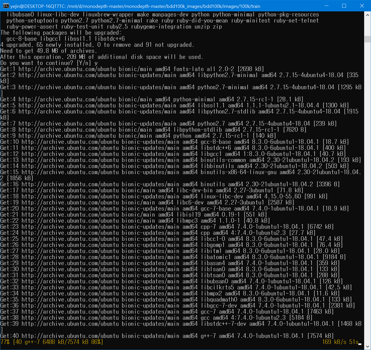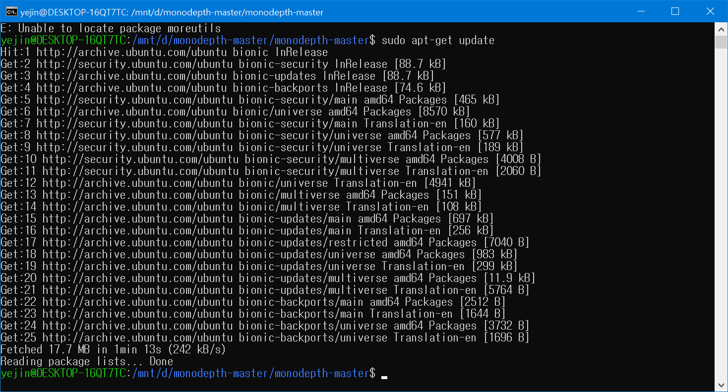 이걸 돌리려는데, 리눅스 환경이 아니고, 윈도우에서 우분투 다운받아서 돌리는거라서 에러가 난다.