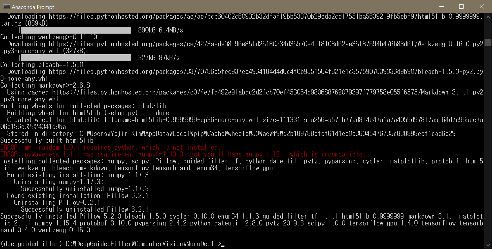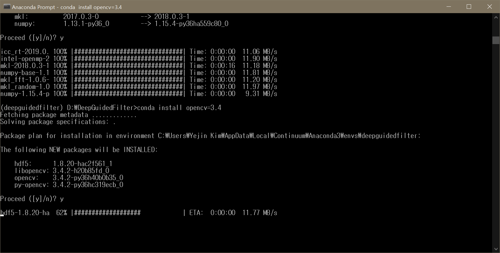 conda install mkl=2018 진행