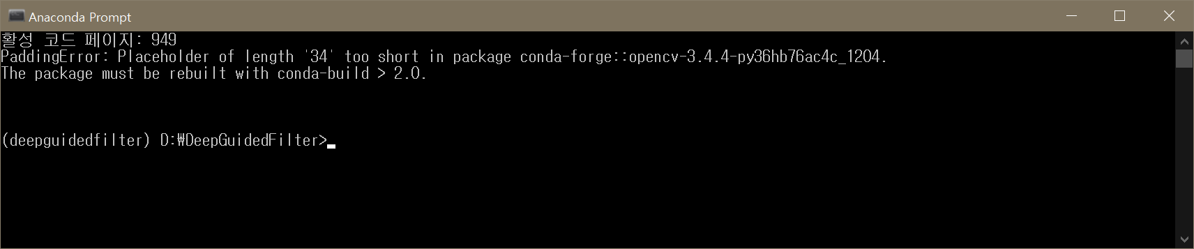 그리고 또 conda가 opencv 못 찾길래