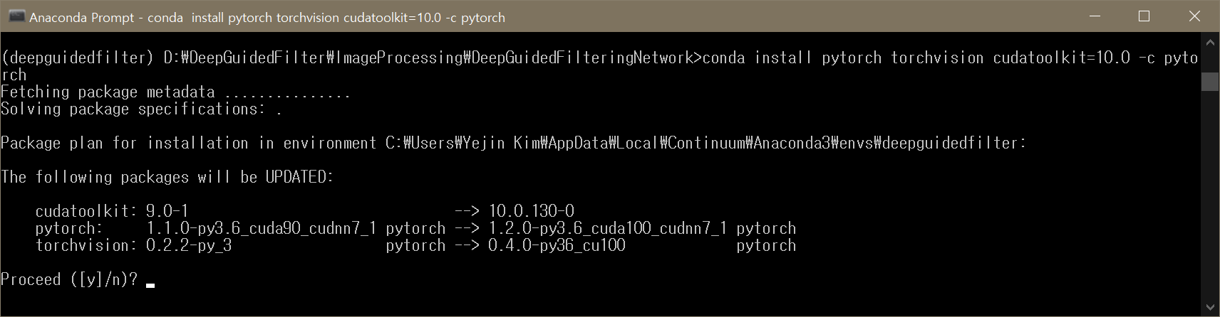 conda update conda진행
