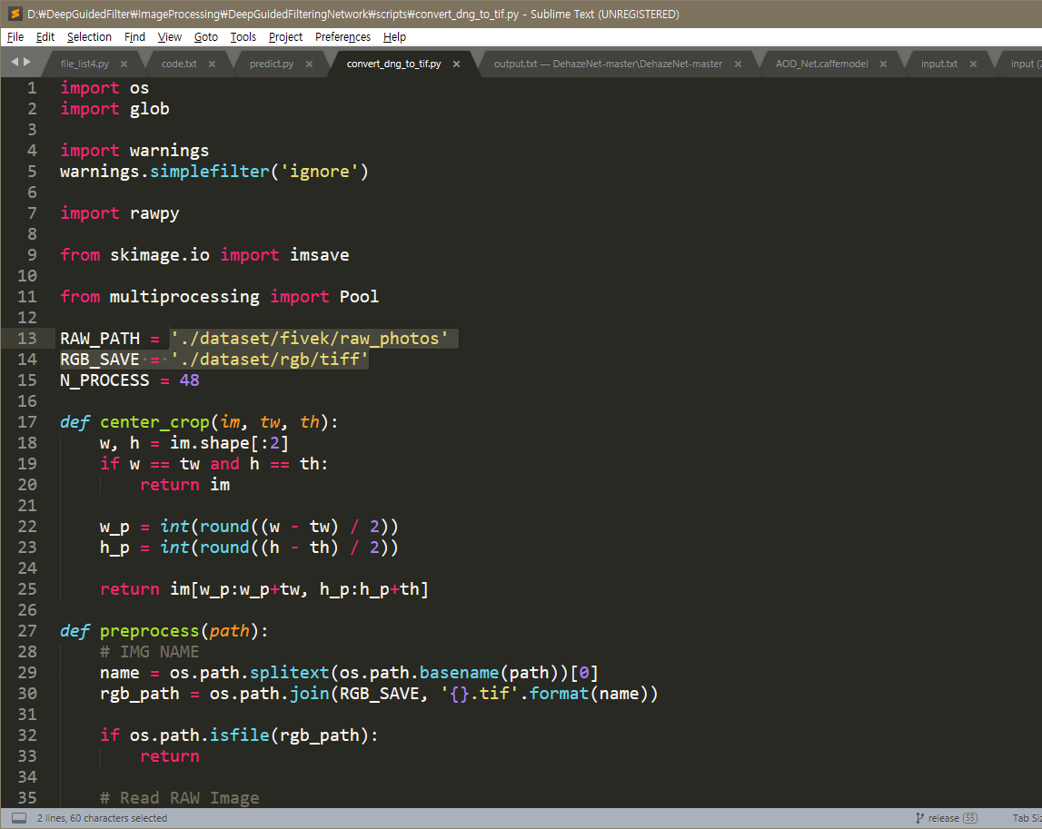 dng파일을 모아둔 폴더를 경로로 설정해보았다.