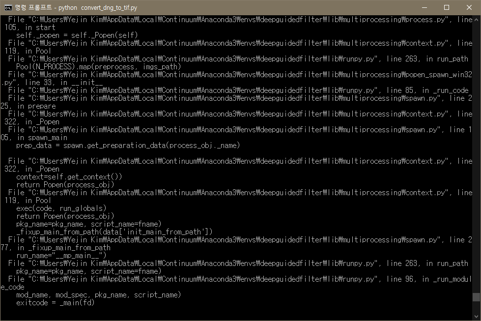 그래도 에러가 난다. 분명 이거 파이썬 상에서 어떤 부분을 돌려야할지 컴퓨터가 몰라서 생기는 문제 같은데,