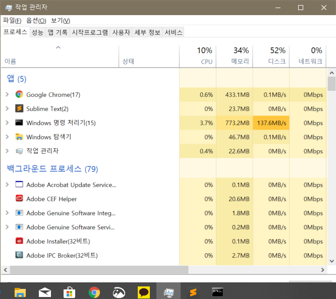 일단 작업관리자 상태로 보아하니 괜찮은것같아서 내버려둬보고 수행이 끝나면 확인해보기로 하자.