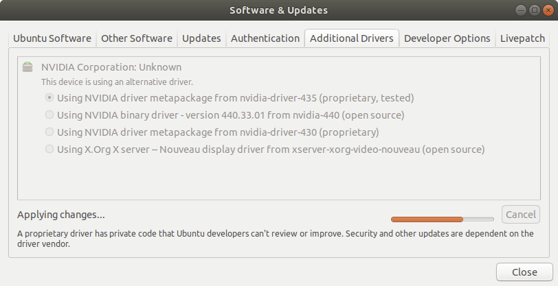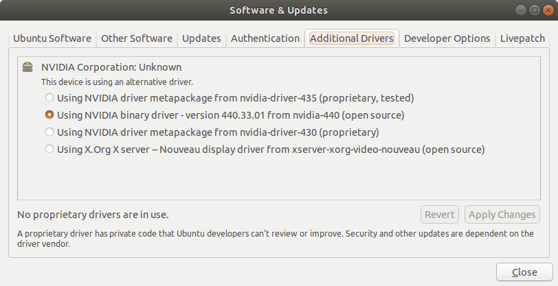 아까는 no propeietary drivers라고 나와있었는데, 1개의 proprietary driver라고 나와있으니까. 일단 희망적이다.