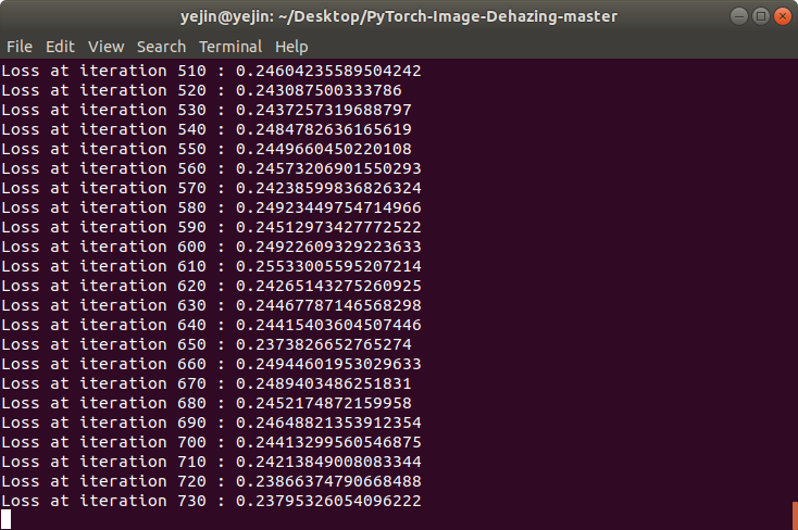 (aod) yejin@yejin:~/Desktop/PyTorch-Image-Dehazing-master$ python train_int.py