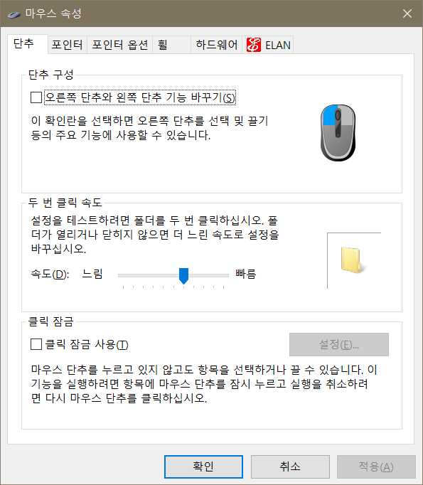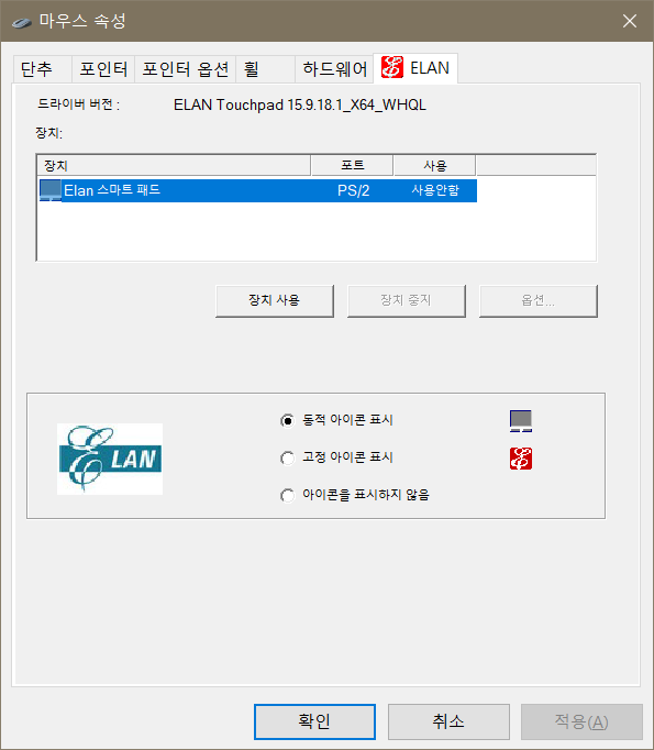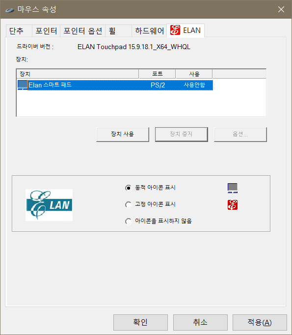 마우스 설정 할 때 ELAN이라고 뜨거나 제어판 상에 이거랑 같은 이름이 있으면 이거 맞습니다.