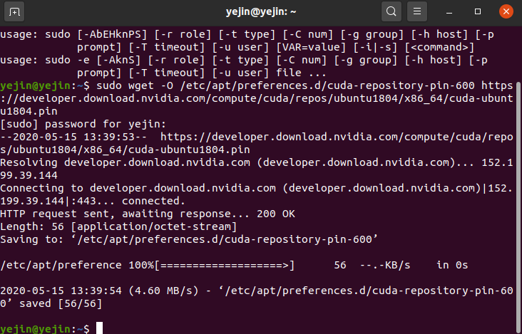$ sudo wget -O /etc/apt/preferences.d/cuda-repository-pin-600 https://developer.download.nvidia.com/compute/cuda/repos/ubuntu1804/x86_64/cuda-ubuntu1804.pin