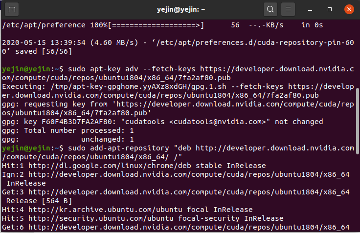 $ sudo apt-key adv --fetch-keys https://developer.download.nvidia.com/compute/cuda/repos/ubuntu1804/x86_64/7fa2af80.pub
