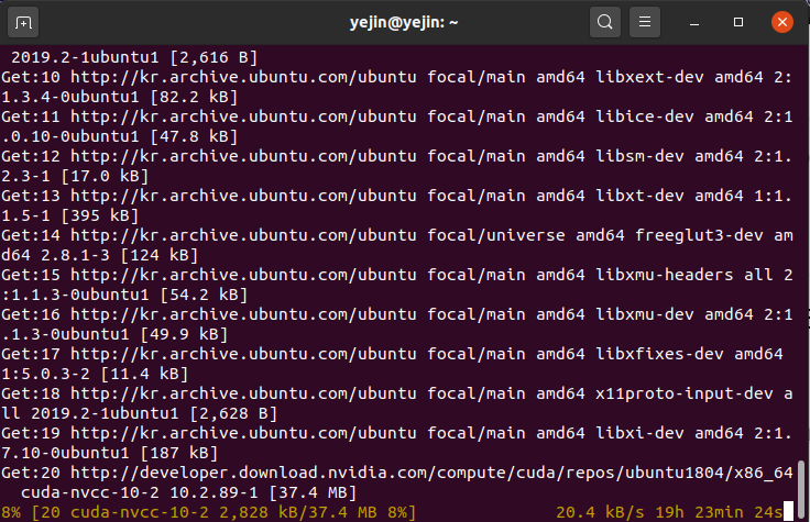 이 당시에는 엔비디아에서 우분투 20.04 에 대한 cuda 파일을 제공하지 않던 시기였고,