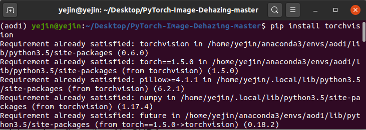 pip로 torchvision을 이미 설치하였다는 것을 확인하였는데, 어떤 것이 문제일지 더 알아보도록 하겠다.