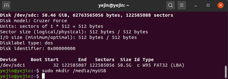 일단 umount를 이용해서 기존 sdc1이 이미 마운트가 된 것인지는 아닌지 확인해야 한다.