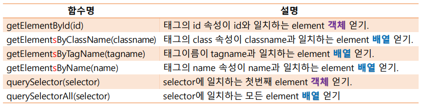 | createElement(tagName) | element ๋ ธ๋๋ฅผ ์์ฑ |