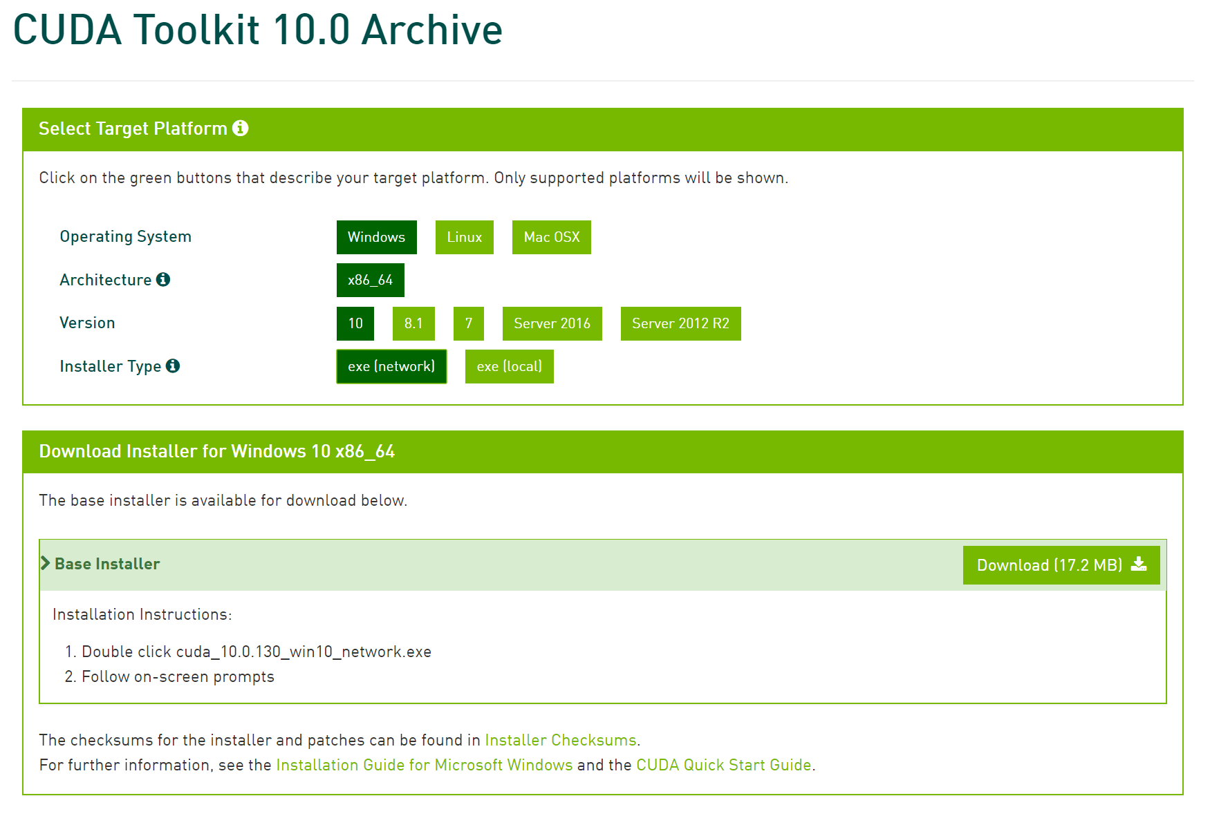 일단 설치는 여기서 한다. https://developer.nvidia.com/cuda-10.0-download-archive (10.0기준)