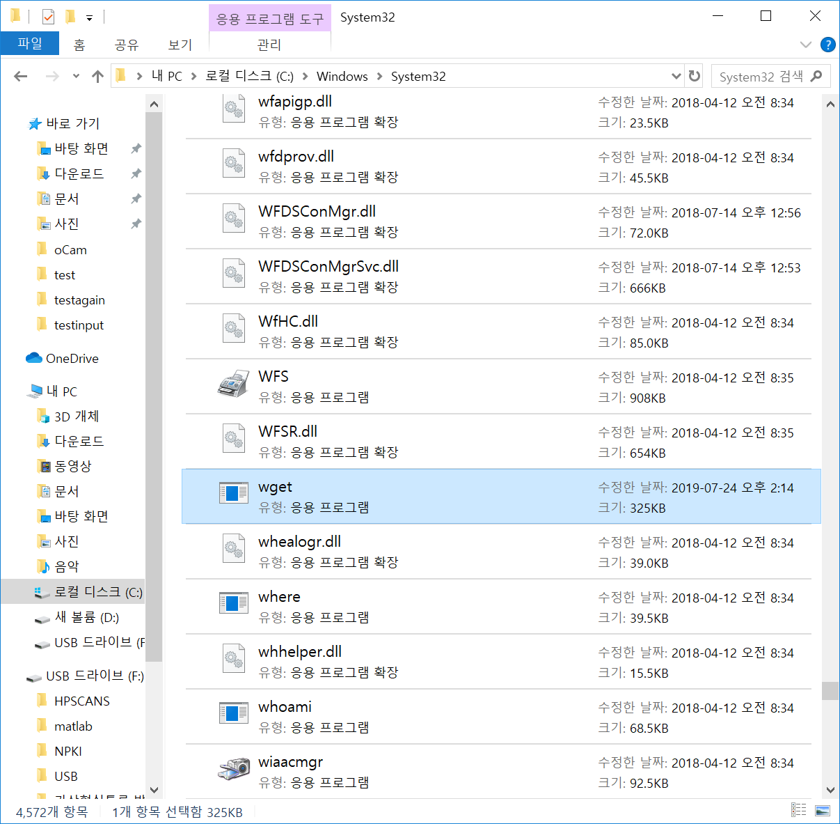 wget 파일을 system32폴더에 넣어달라고 하니까 잘라서 넣어주겠다.