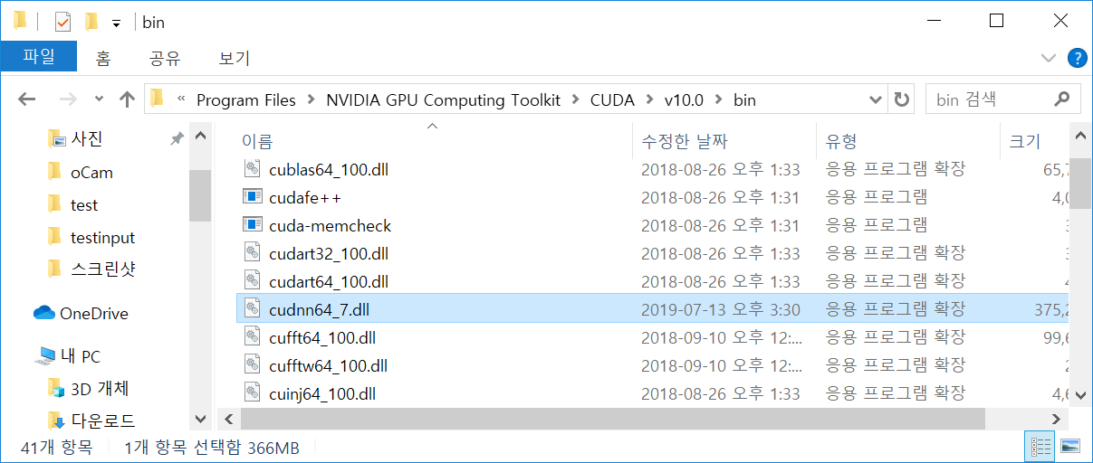 cudnn이라는 라이브러리의 dll파일을 찾을 수 없다는 에러가 뜨길래 일단은 다운로드를 받아보겠다.