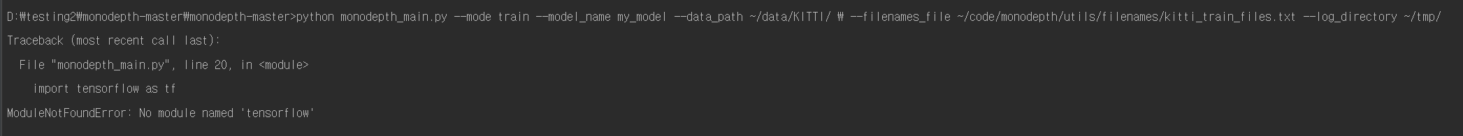 python monodepth_main.py --mode train --model_name my_model --data_path ./data/KITTI/ --filenames_file ./utils/filenames/kitti_train_files.txt --log_directory ./tmp/