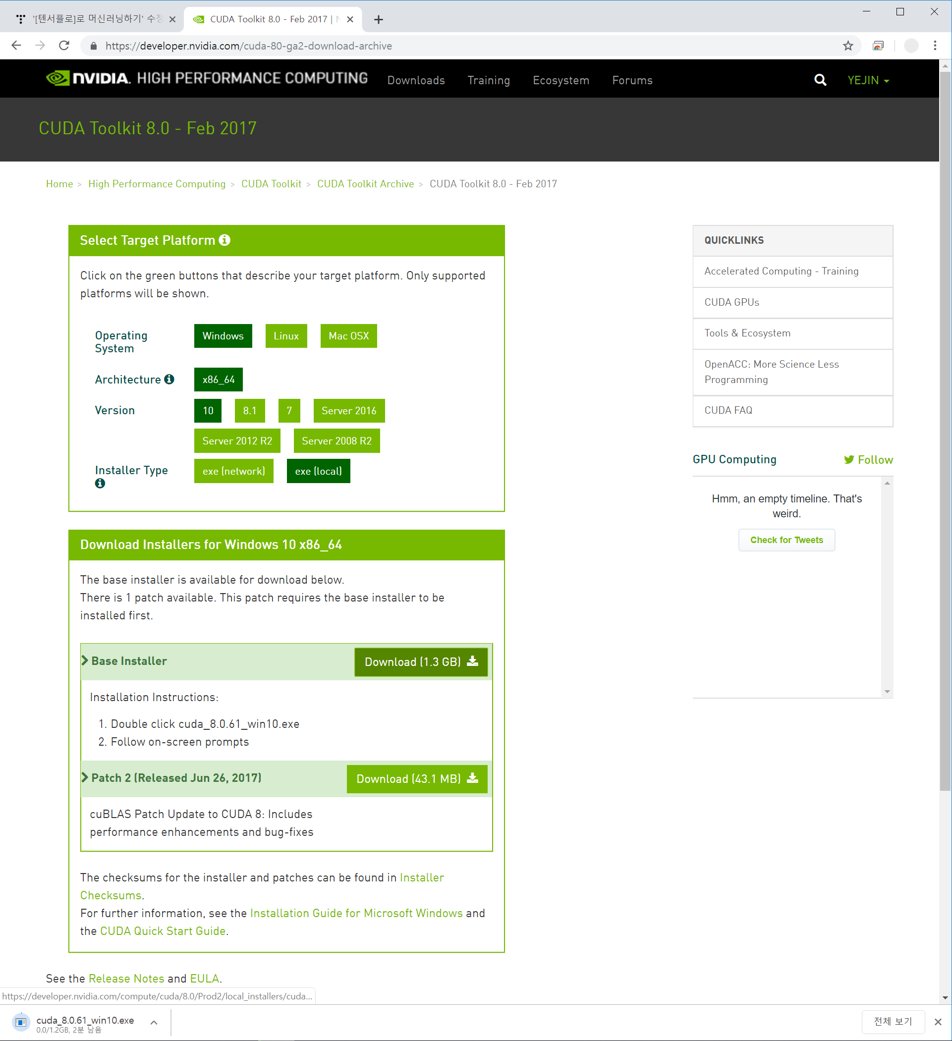 자 이거 알아두고 다 종료한 다음에 쿠다만 다시 깔자.